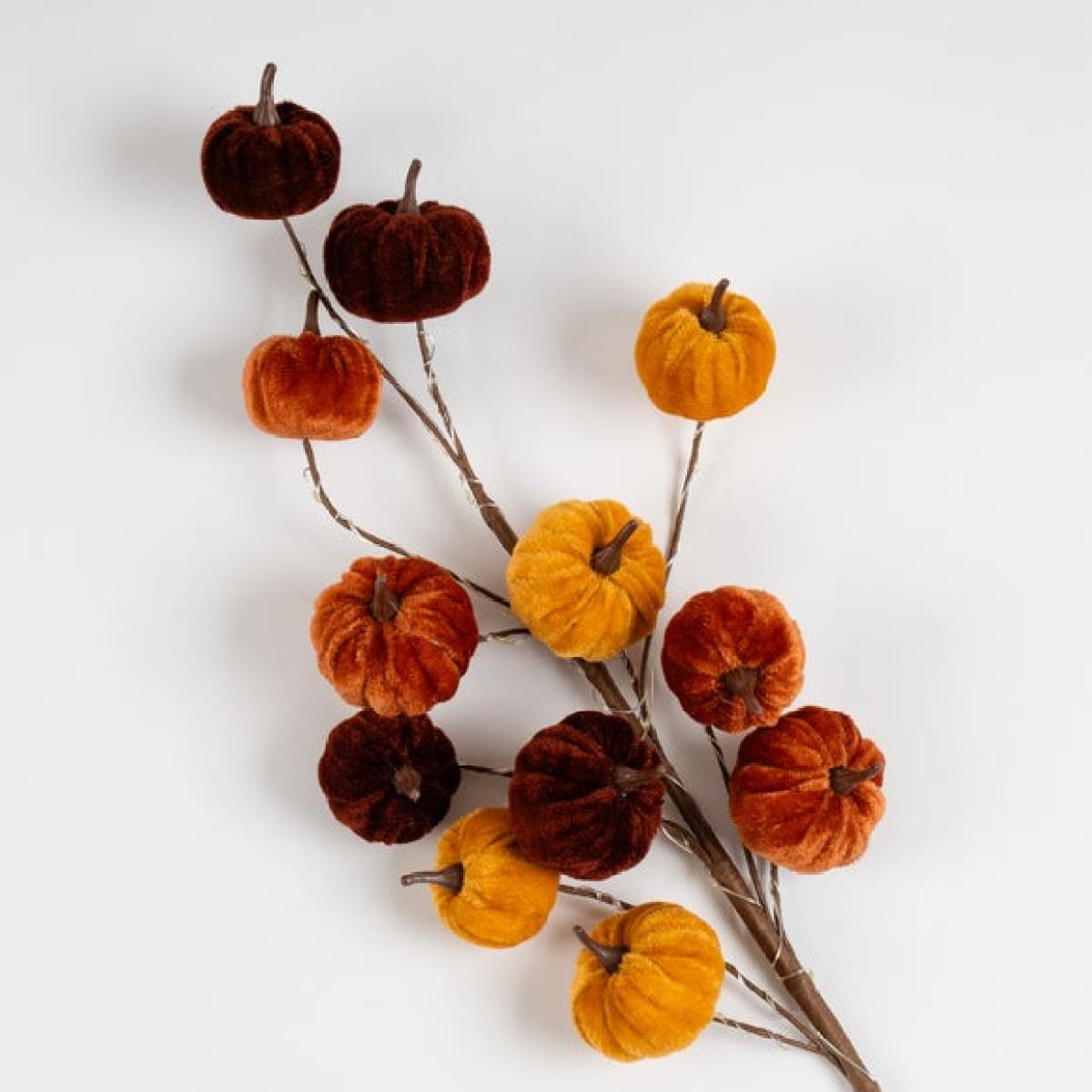 Set of 2 Pre-Lit Artificial Velvet Pumpkin Stems