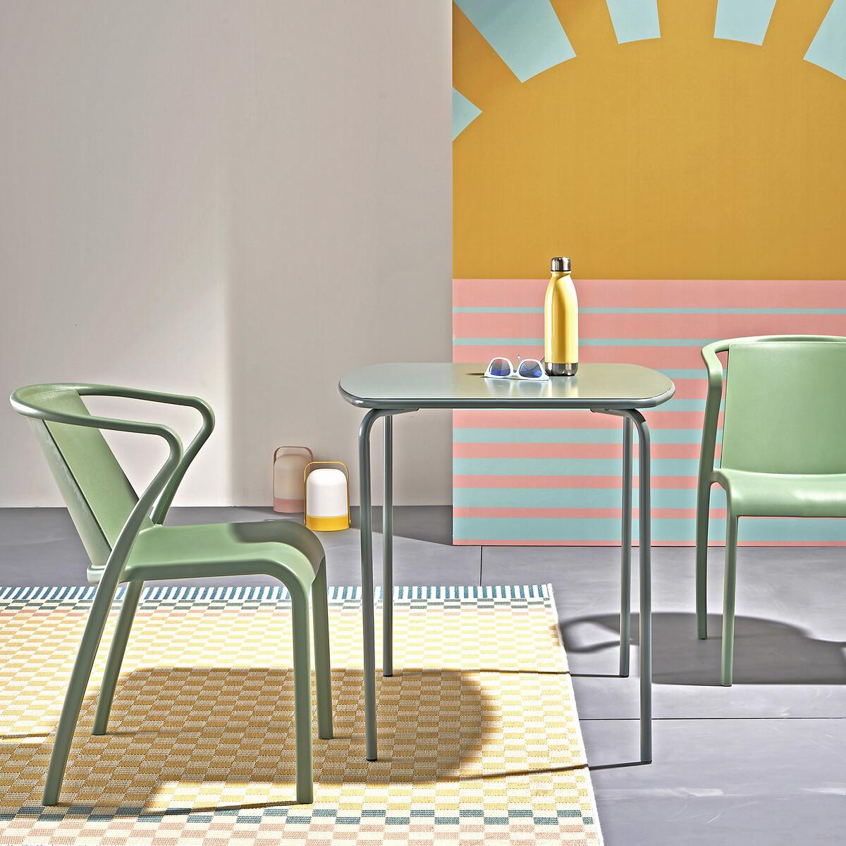 Designed in polypropylene reinforced with gas-injected fibreglass, stackable and robust, these armchairs are perfect for outdoors. Product Details • Set of 2 armchairs • Polypropylene structure reinforced with gas-injected fibreglass • Stackable • Made in Portugal Quality Info • Polypropylene offers good weather and UV resistance. To maintain them, simply wash with a soft sponge in soapy water. Dimensions • Width: 50.6cm • Height: 76.2cm • Depth: 56.3cm • Sold pre-assembled. • MADE IN PORTUGAL.Parcel Dimensions: • L58 x H88 x D54cm • 13.6kg