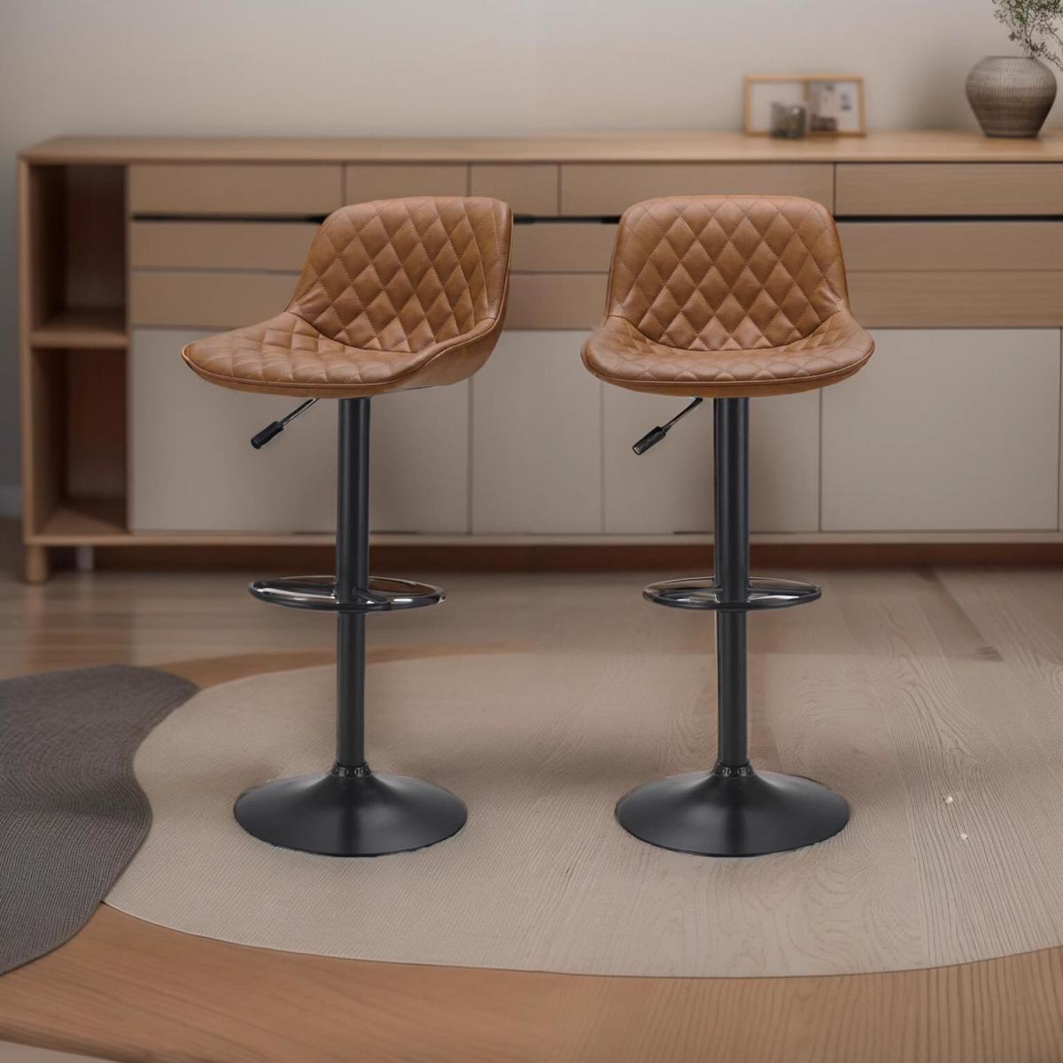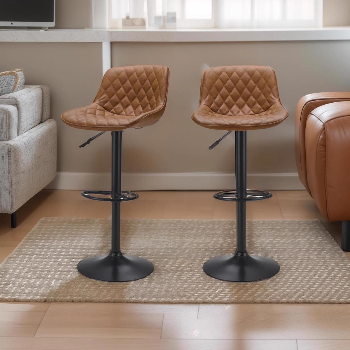 With this Livingandhome PU Leather Bar Stool, you can dine or socialize in coziness and luxury. The backrest is ergonomically designed with a curved shape that complements the comfort of the seat. You can lean against the back of the bar chair and put your legs on the footrest for a comfy sitting position. Its base is treated with powder coating to guarantee long-lasting protection against everyday wear and tear. Featuring a 360 degree swivel seat, the chair allows you to effortlessly turn in any direction, making it convenient for conversations. Adjusting the height of this bar stool is also a breeze, thanks to the gas lift lever located under the seat.