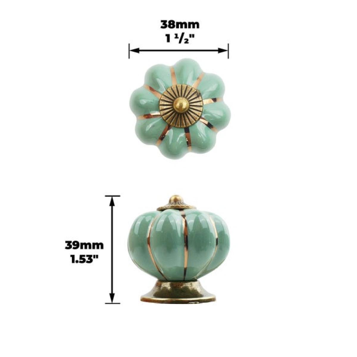 * Set of 2 * Made from Ceramic * 2 year guarantee Bring a touch of vintage charm to your furniture with our Pumpkin Cupboard Door Knobs. With their classic shape and ceramic finish, they add a soft elegance to any drawer or cabinet. Ideal for dressing tables, sideboards or shaker style kitchens, and easy to fit with all the fixings included.
