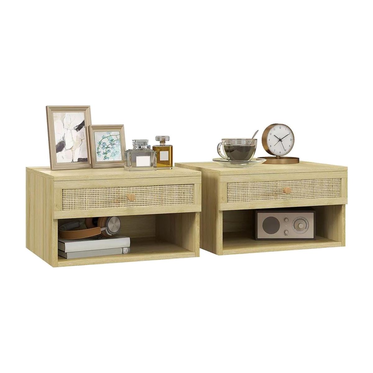 Set of 2 Rattan Floating Bedside Tables - Natural