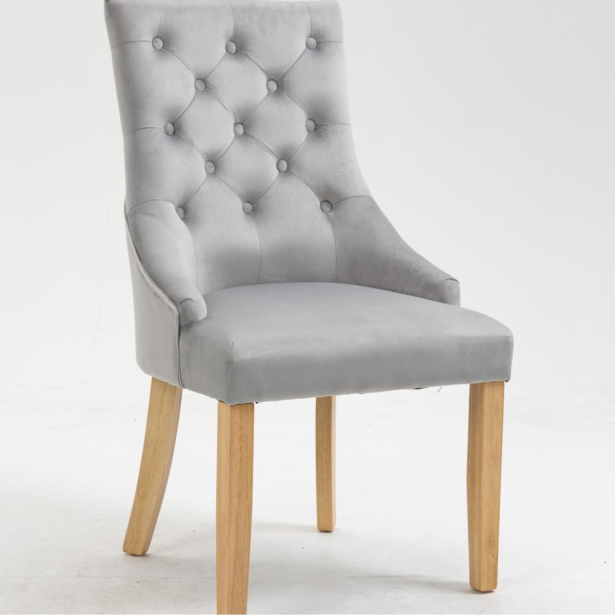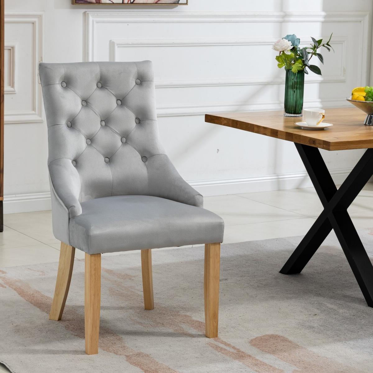 Elevate your dining space with a touch of luxury through our exquisite pair of dining chairs, featuring an elegantly studded back that adds a refined charm to any setting. Wrapped in opulent velvet upholstery, these chairs are meticulously crafted around a robust solid wooden frame, ensuring enduring quality coupled with comfort. The pine-coloured wooden legs not only provide stability but also infuse a warm natural essence into your space. Assembly is a breeze with our user-friendly design, while our efficient delivery ensures a seamless experience. Choose from a diverse palette of colours to effortlessly match your decor or create a striking contrast. Elevate your dining area with this sophisticated and functional pair of dining chairs, seamlessly combining comfort and elegance to redefine your dining moments.
