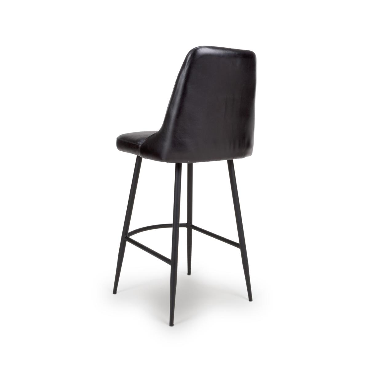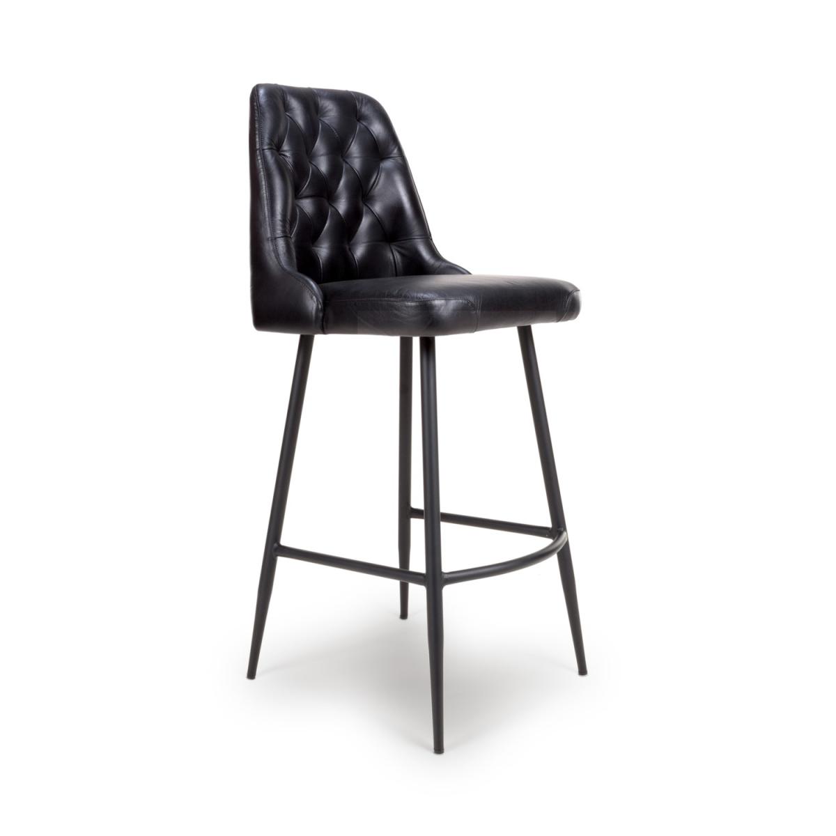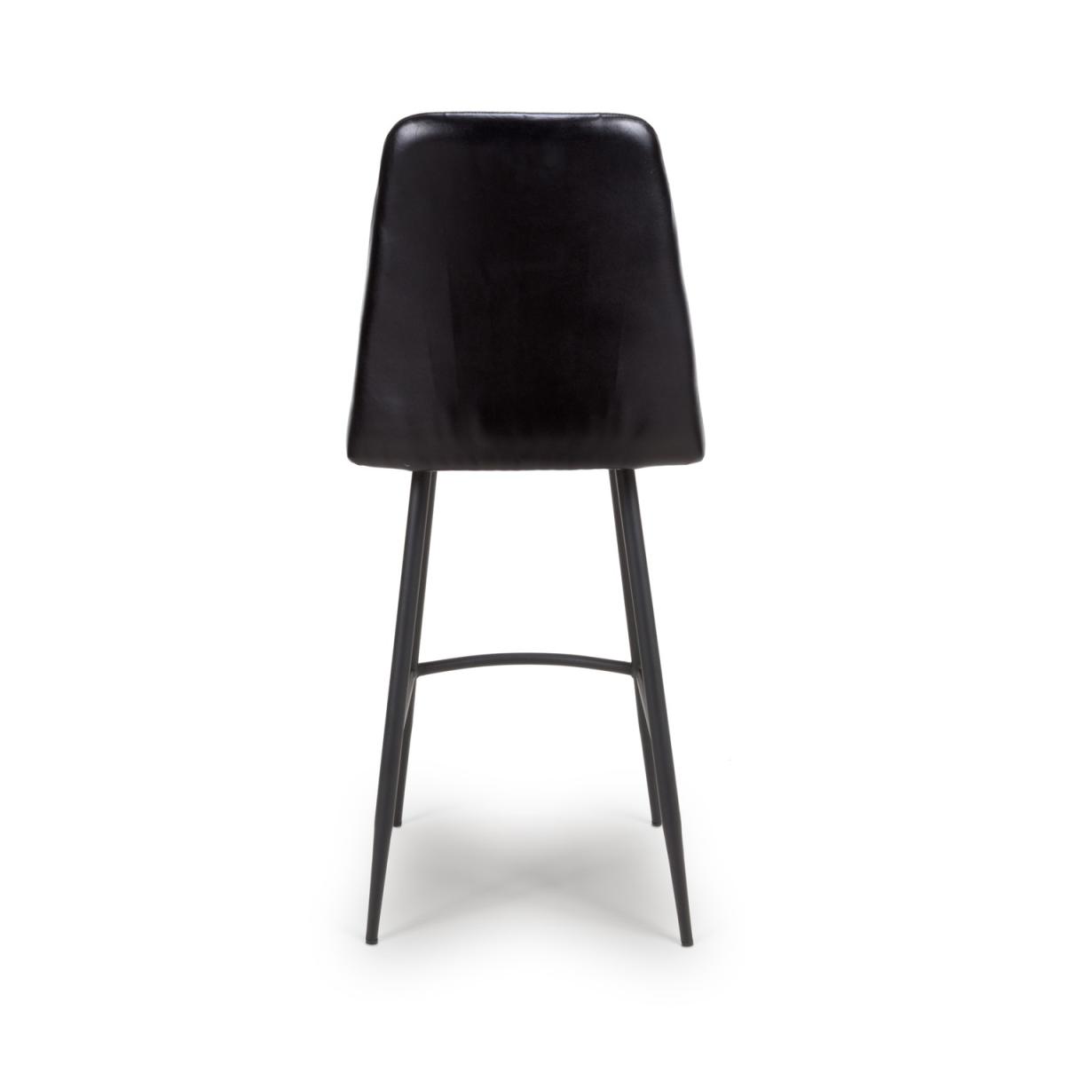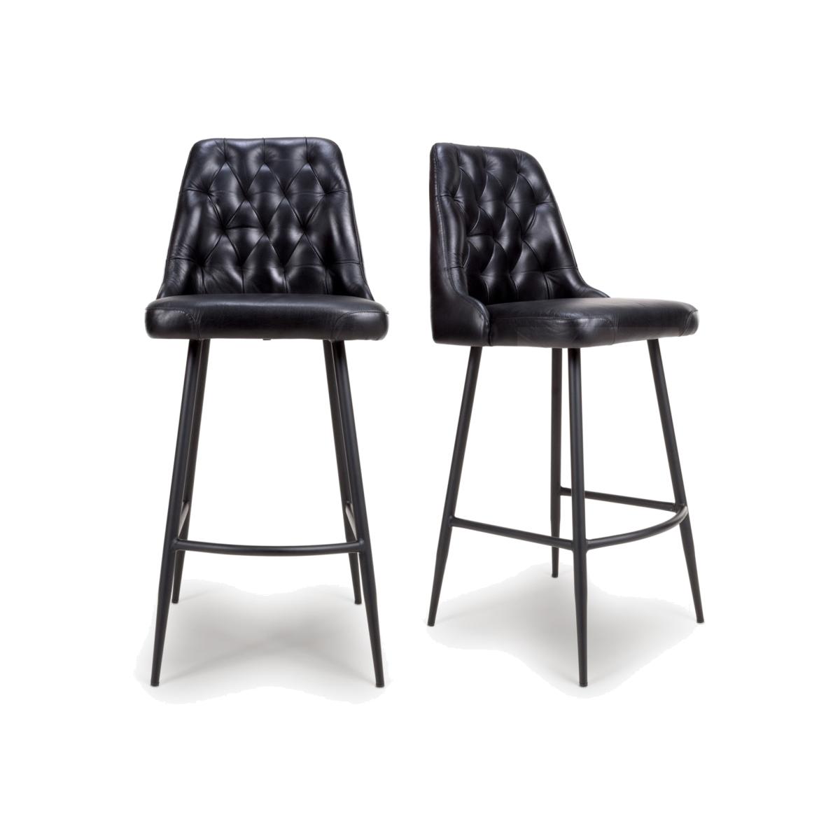 Set Of 2 Real Leather Black Kitchen Stools with Quilted Back - Jaxson