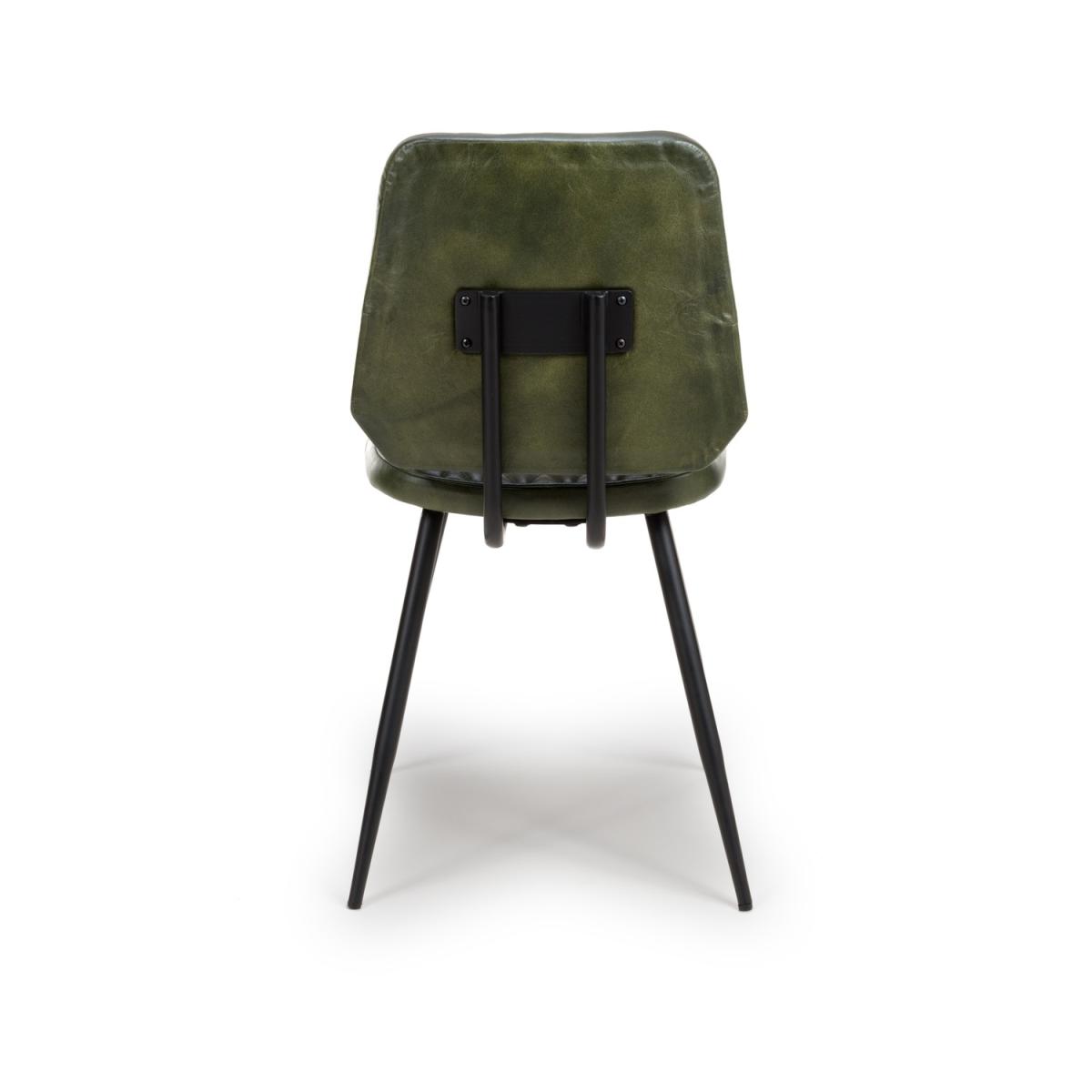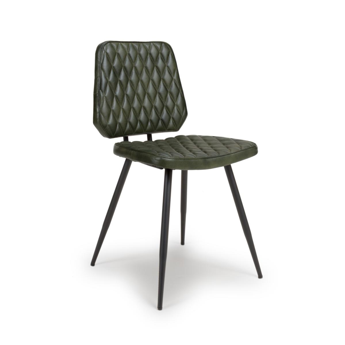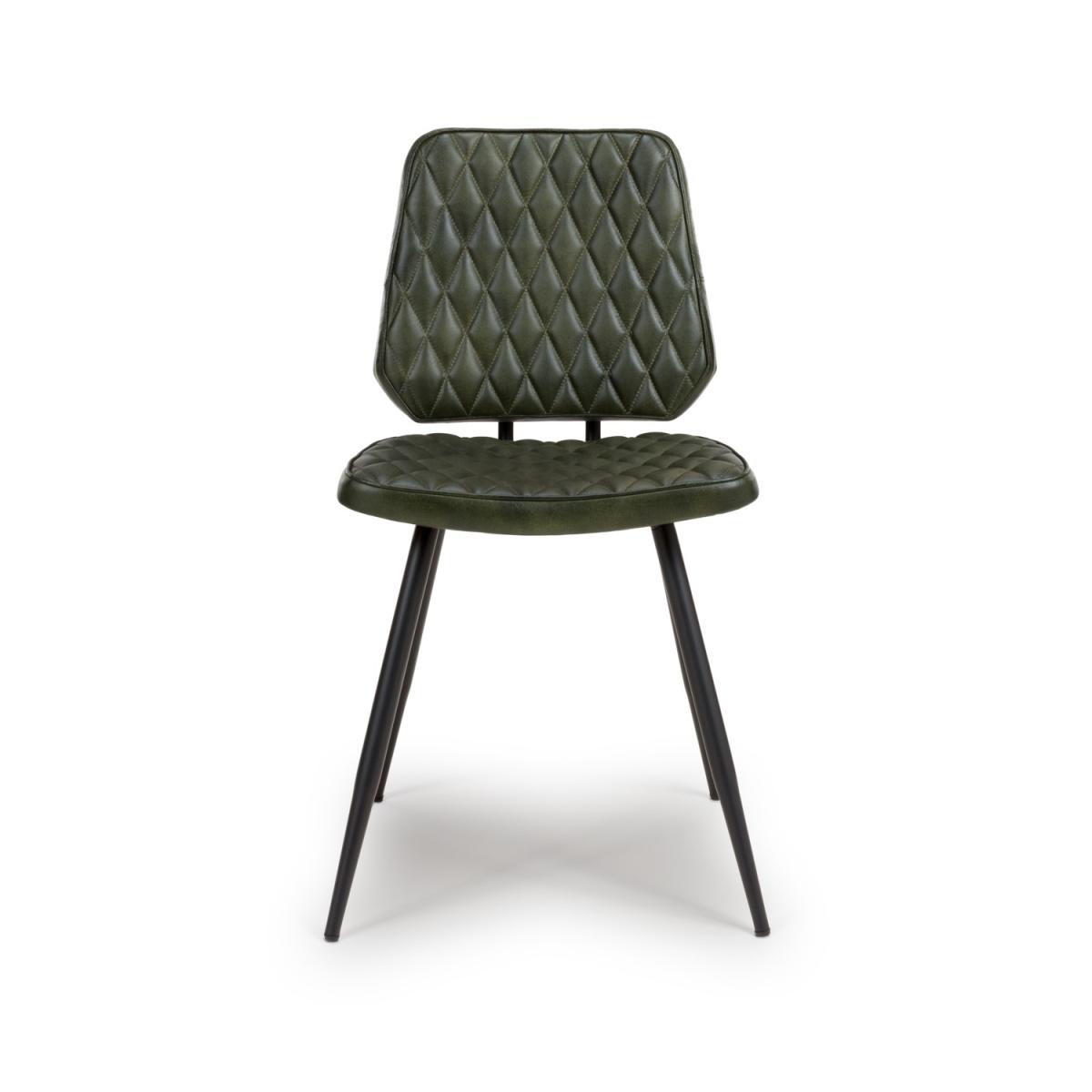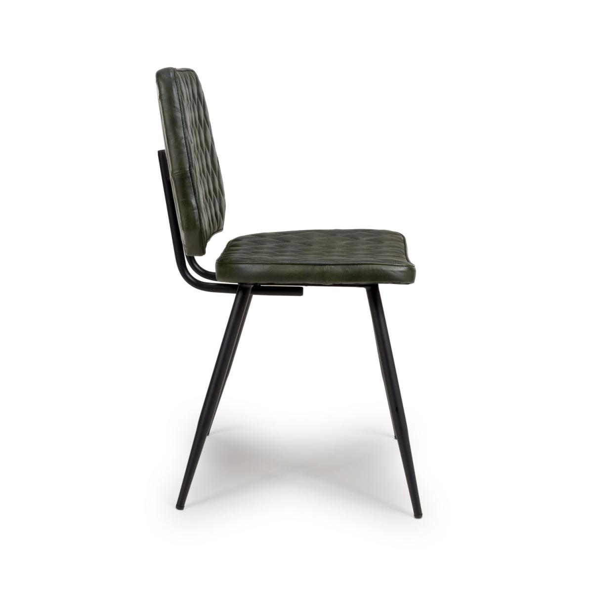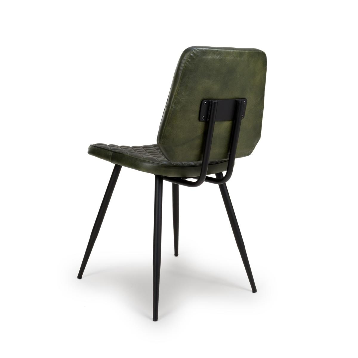 Set Of 2 Real Leather Green Dining Chairs with Quilted Back - Aiden