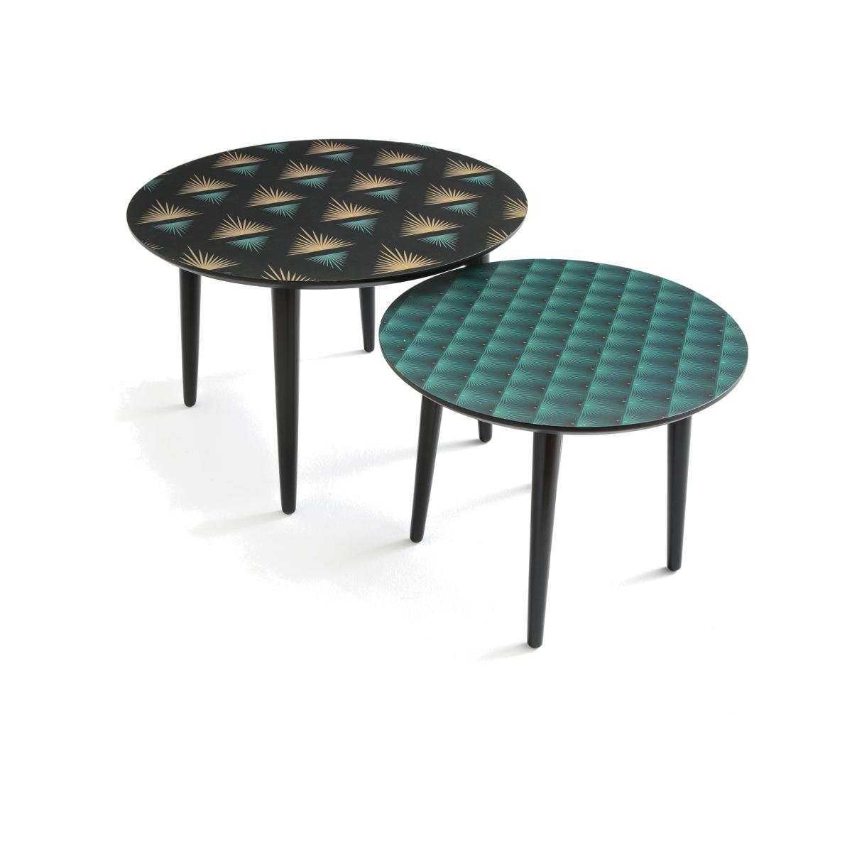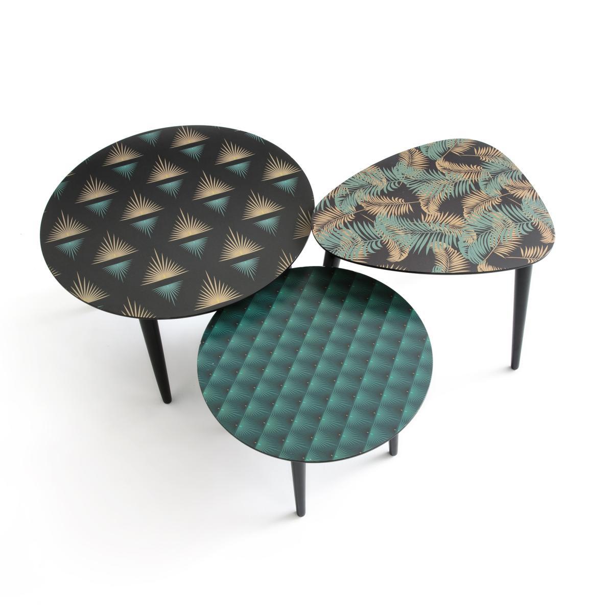 Ronda semi-nesting coffee tables. Inspired by Brazil and its lush jungle, the Ronda nesting coffee tables create a vintage inspired home with their rich colours and retro patterns!