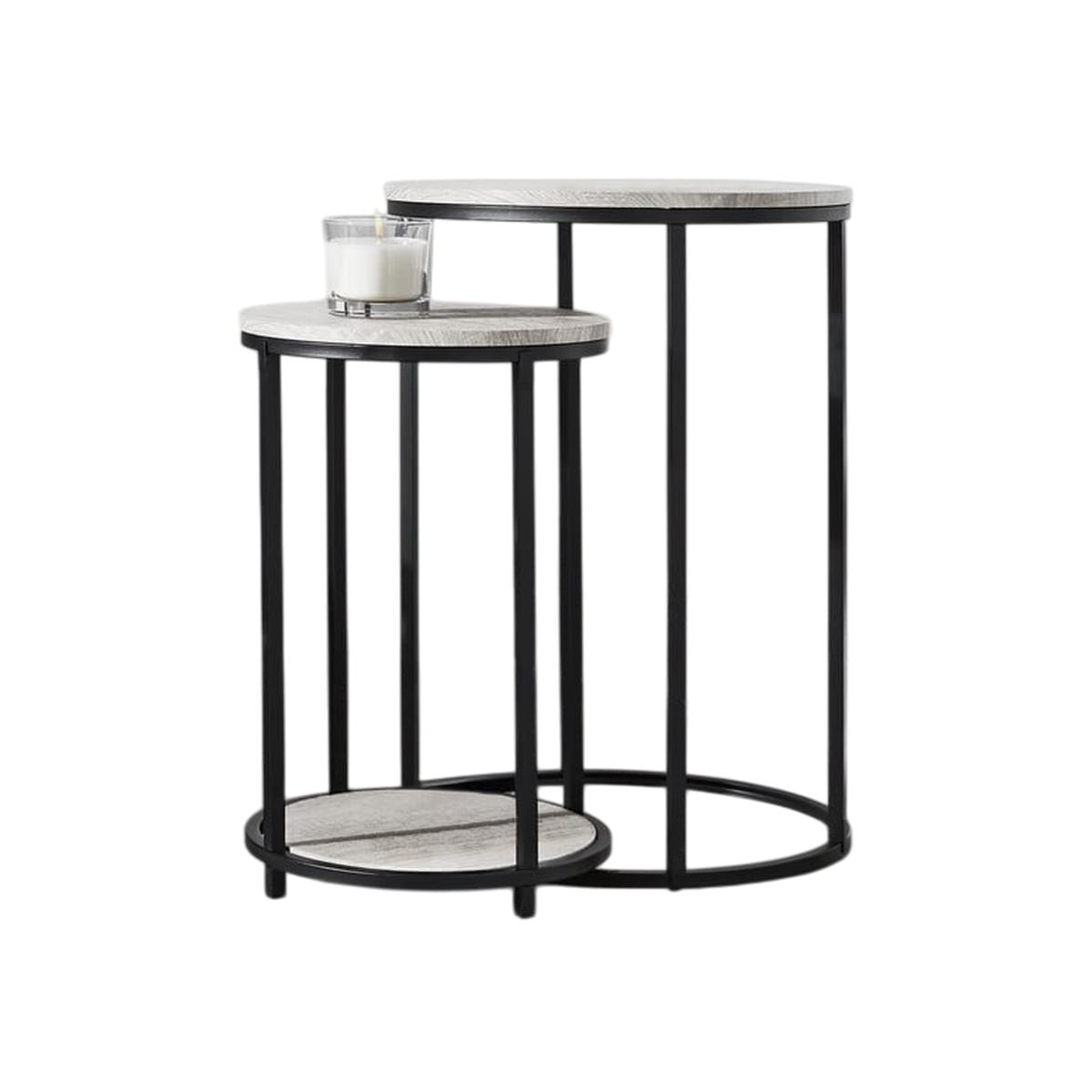 These nesting tables are a versatile addition to both modern and industrial-inspired interiors thanks to their sleek black frame and marble-effect tops. They work well in living rooms as side tables or in bedrooms as extra surface space. I love how adaptable they are - you can separate them to create different arrangements or keep them nested for a compact look. Practical styling tips include stacking books or candles on the smaller one, or using the larger for beverages and essentials when entertaining. Their simple yet stylish design makes them a fuss-free way to add function and a touch of contemporary elegance to your space.