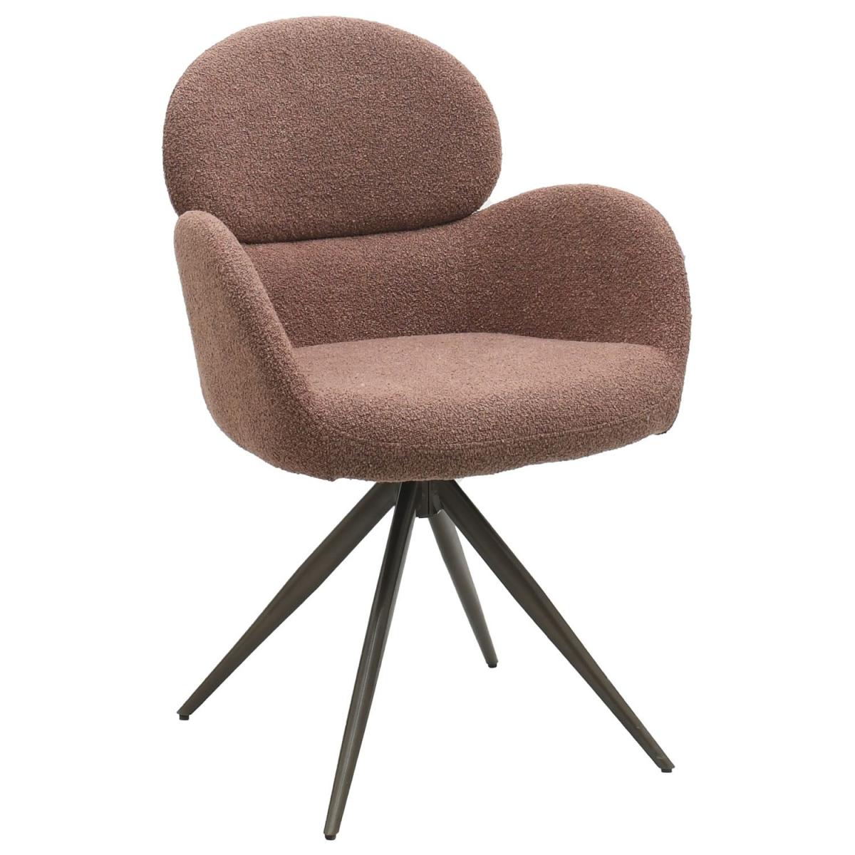 Enjoy ultimate flexibility and convenience with a full 360-degree swivel feature, perfect for dynamic seating options in dining or living spaces. The soft boucle fabric in a warm rust tone adds a touch of retro elegance while being cosy and inviting. The curved, cocoon-like backrest creates a unique silhouette, blending vintage charm with contemporary style. Sleek bronze-finished legs complement the rust boucle fabric, adding a sophisticated contrast and stability. Perfect for pairing with a dining table or as accent chairs in a living room or office. Introduce a retro flair to your home with these Rust Boucle Swivel Dining Chairs. Upholstered in plush rust boucle fabric, these chairs offer both comfort and style. The cocoon-like curved backrest provides a cosy seating experience, while the 360-degree swivel feature ensures versatility for dining, working, or relaxing. Supported by elegant bronze-finished legs, these chairs combine practicality with timeless design. Ideal as a set of two, they make a stunning addition to any dining table, kitchen, or even as statement pieces in your living space.