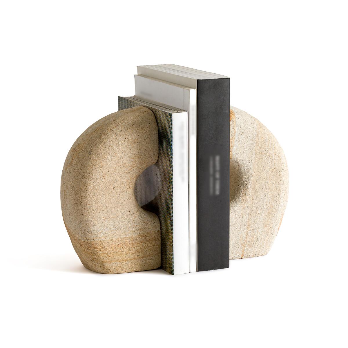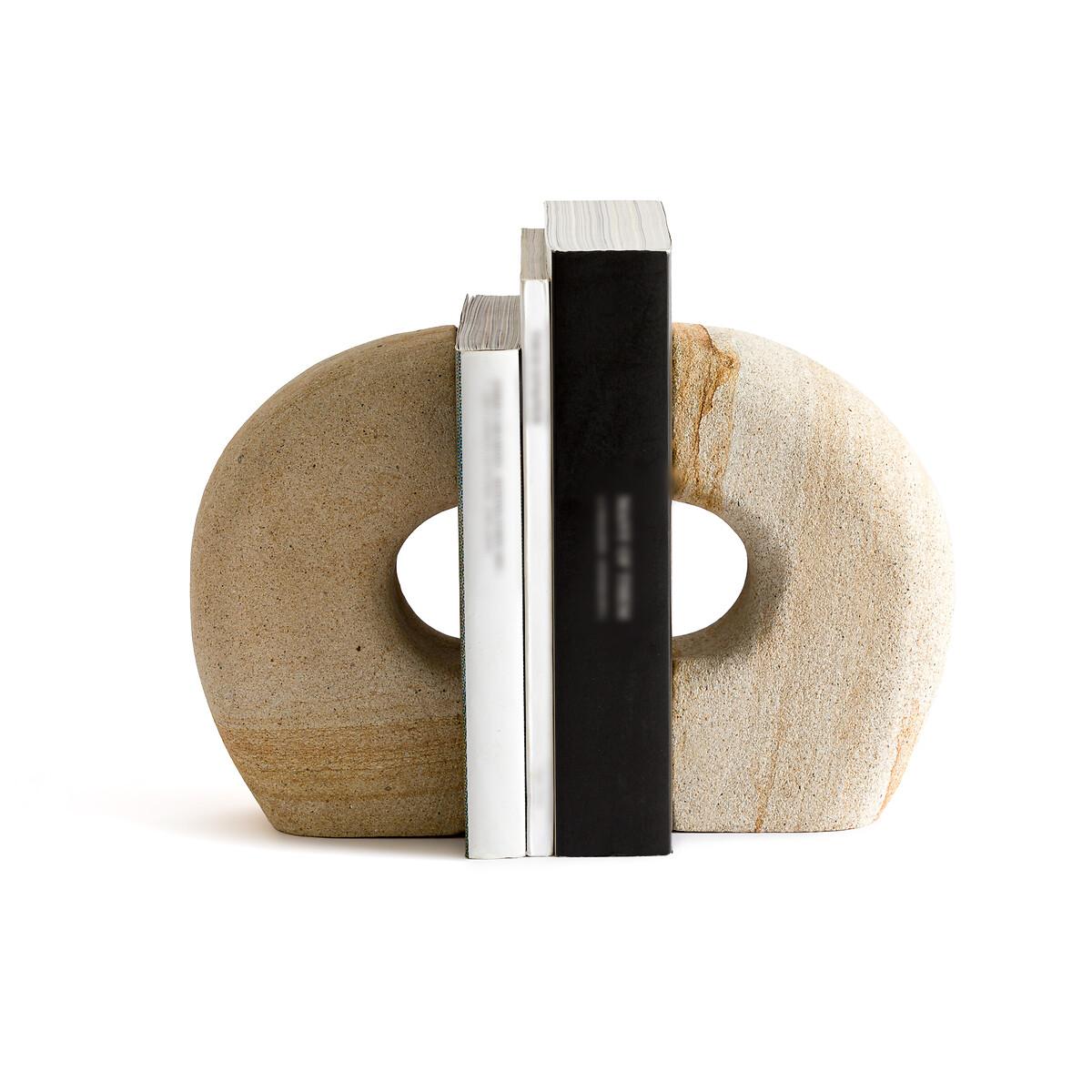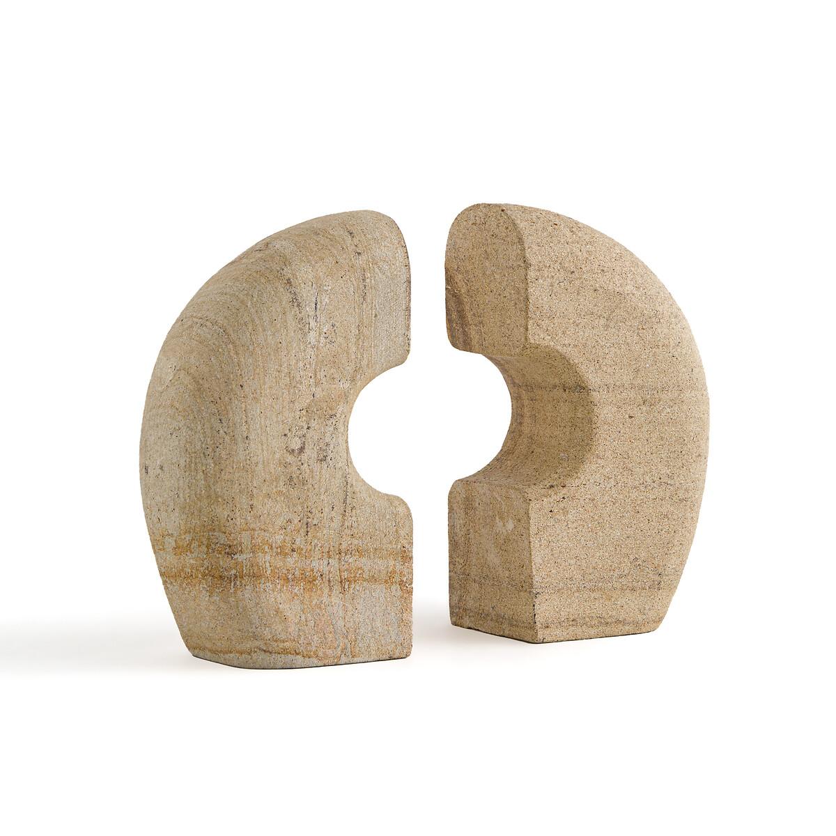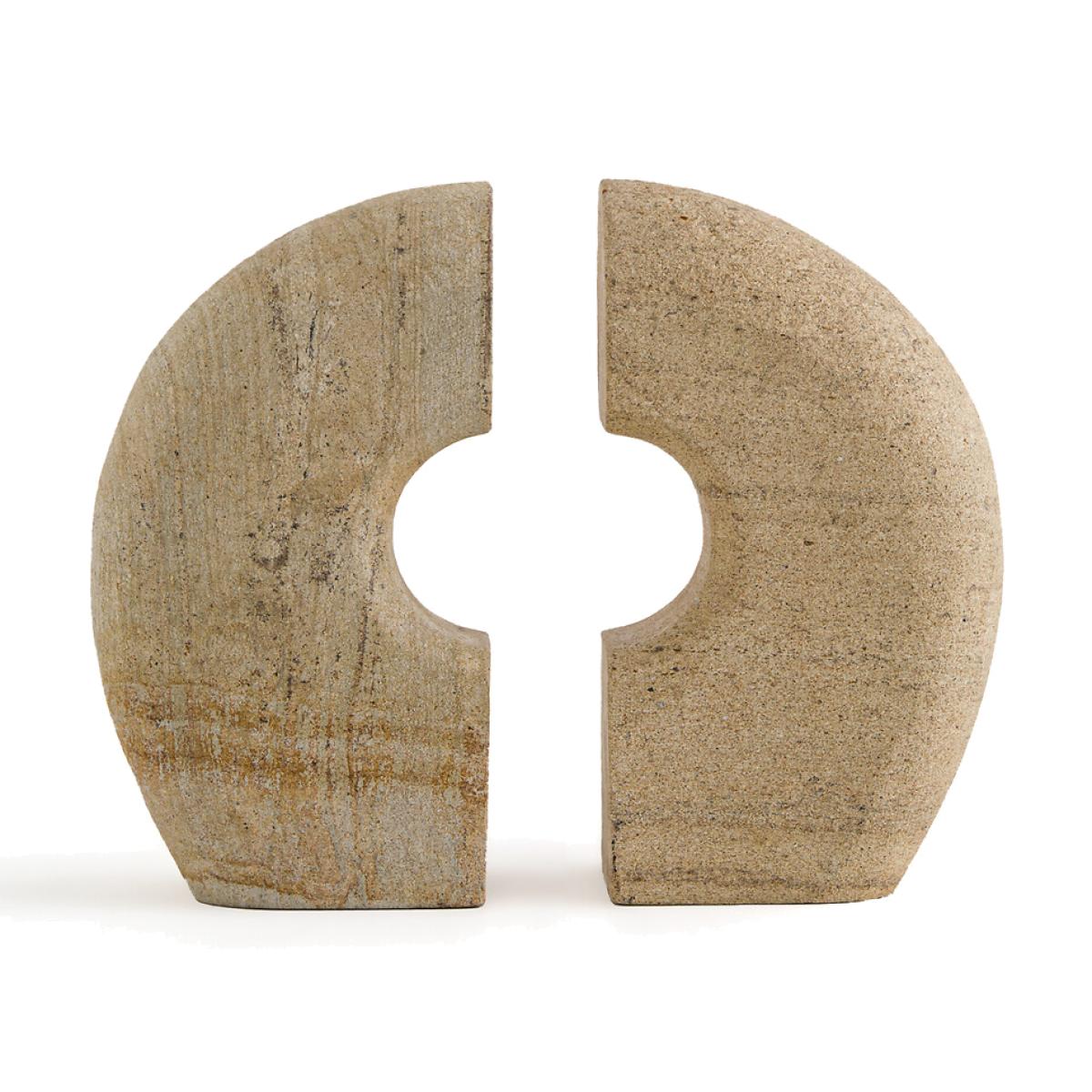 This set of 2 bookends is made of limestone, a sedimentary rock. Elegant, heavy and solid, they are composed of two elements that can be used separately or joined together to form a sculpture. Depending on the stone used, colour variations, veins, appear and make each piece unique. Sandsti is as decorative as it is functional. Limestone is the result of the sedimentation process of sand from shells and corals. It comes from the south of the Yogyakarta region in Indonesia. Product Details • Limestone. Each piece is unique, slight colour variations depending on the stone used. • Set composed of two elements that can be used separately. Dimensions • Width of assembled parts: 20cm • Height: 18cm • Depth: 7cm
