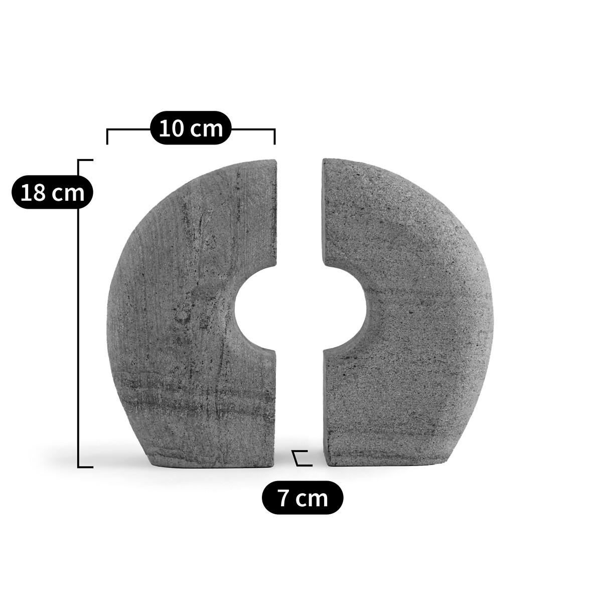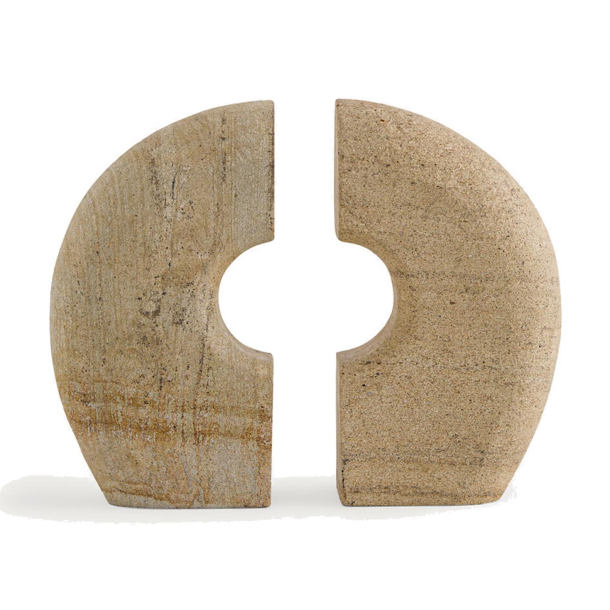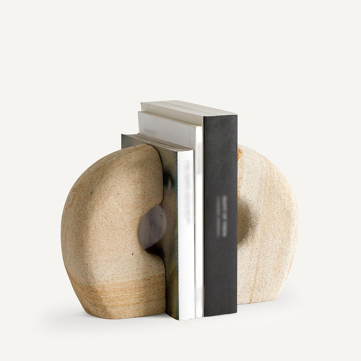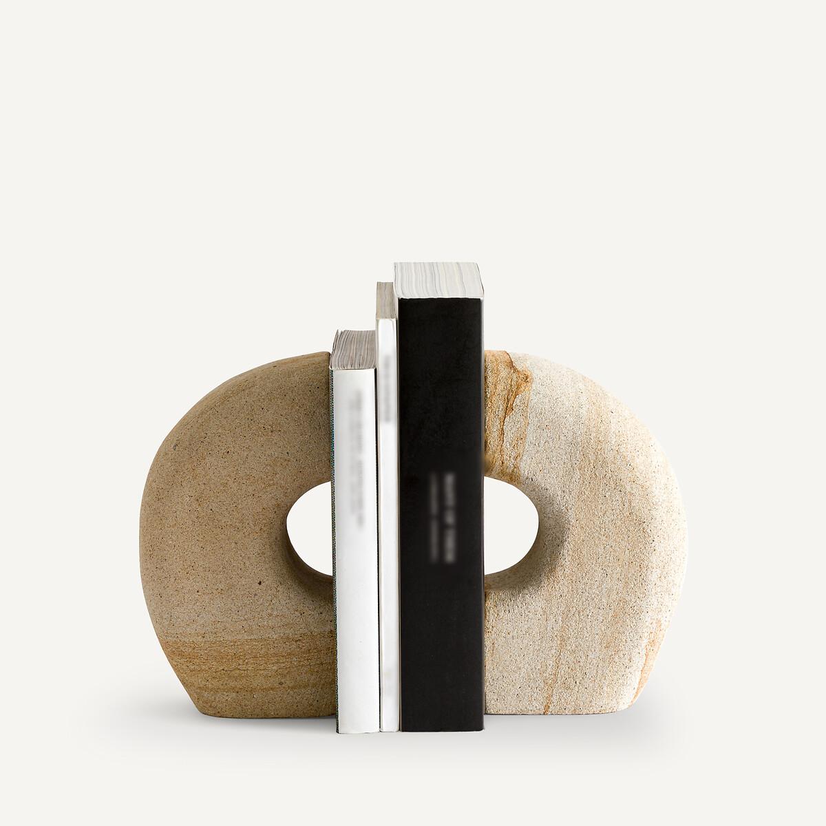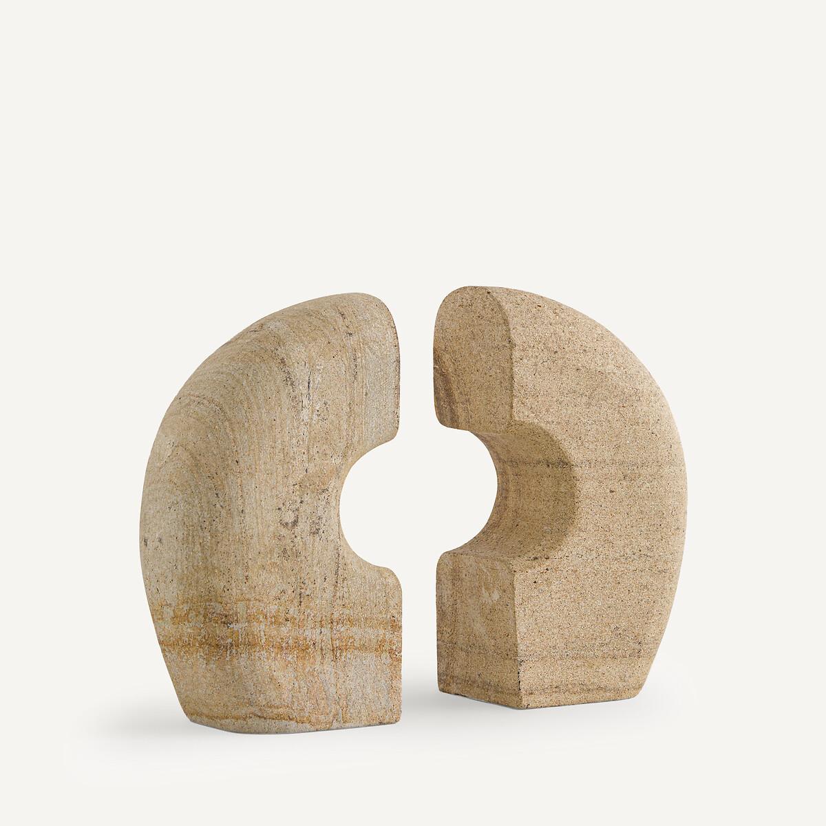 This set of 2 bookends is made of limestone, a sedimentary rock. Elegant, heavy and solid, they are composed of two elements that can be used separately or joined together to form a sculpture. Depending on the stone used, colour variations, veins, appear and make each piece unique. Sandsti is as decorative as it is functional. Limestone is the result of the sedimentation process of sand from shells and corals. It comes from the south of the Yogyakarta region in Indonesia. Product Details • Limestone. Each piece is unique, slight colour variations depending on the stone used. • Set composed of two elements that can be used separately. Dimensions • Width of assembled parts: 20cm • Height: 18cm • Depth: 7cm