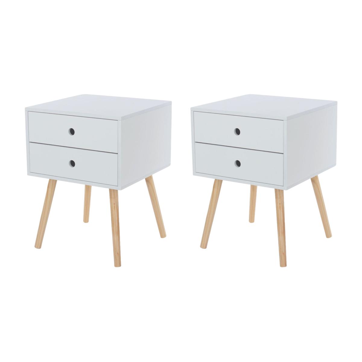 Set of 2 Scandia 2 Drawer Bedside Cabinets with Painted Finish, Tapered Legs - White