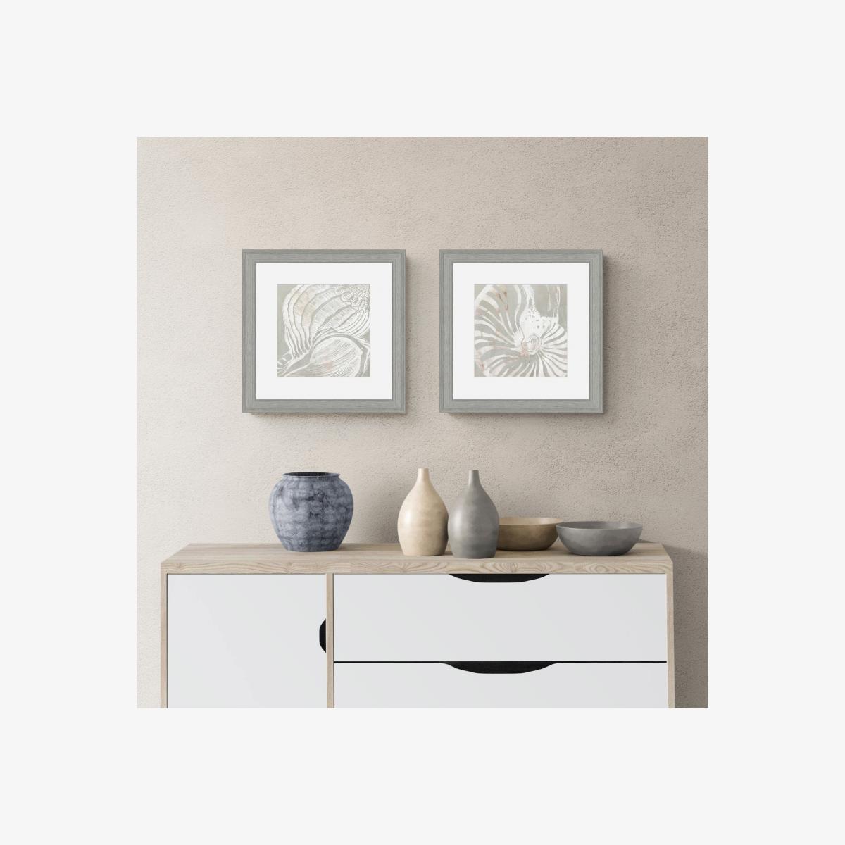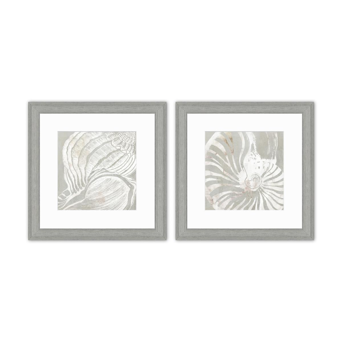 * Set of 2* Light grey sea shell prints* White mounts included* Grey grained effect frames This set of 2 prints feature vintage light grey sea shell artwork by Carol Robinson. They come ready to hang in grey grained effect frames with a white mount and sawtooth fixing on the reverse.