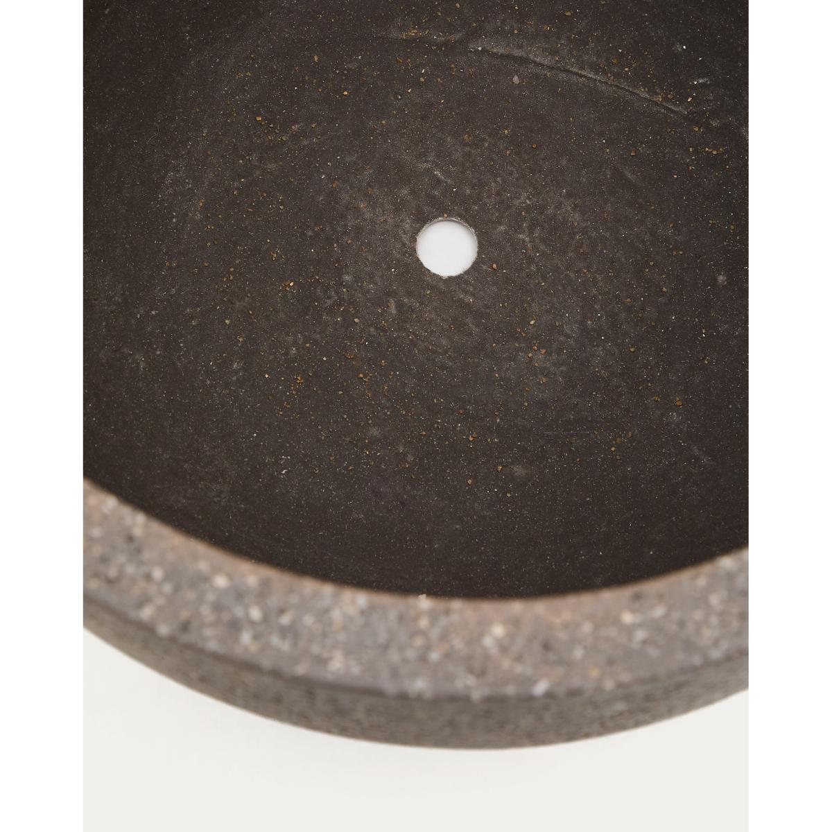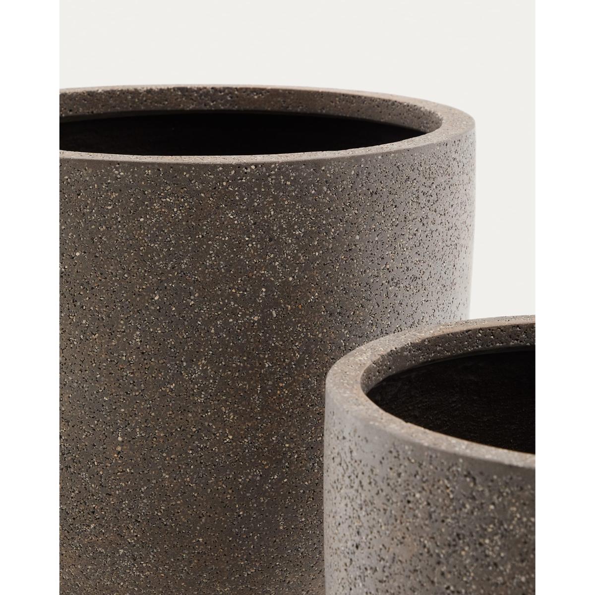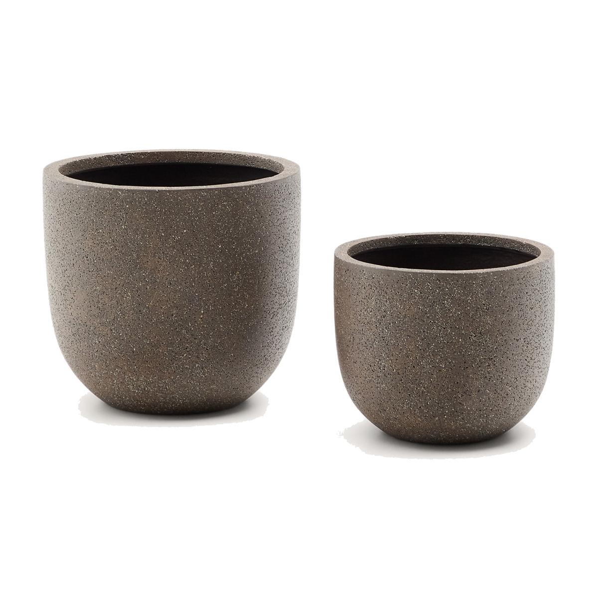 Set of 2 Selvi planters with light brown stone effect Ø 37cm. This set of planters combines rounded shapes and a timeless design that fits perfectly into any environment, whether indoors or outdoors. Its minimalist and versatile design makes it an ideal piece to highlight the natural beauty of your plants, creating welcoming and vibrant spaces. Perfect for adding a touch of harmony and elegance to any corner. Made of poly-cement, a material made of resin and stone dust, it offers the appearance of stone with high resistance and lightness, which makes it easy to handle and ensures its durability.