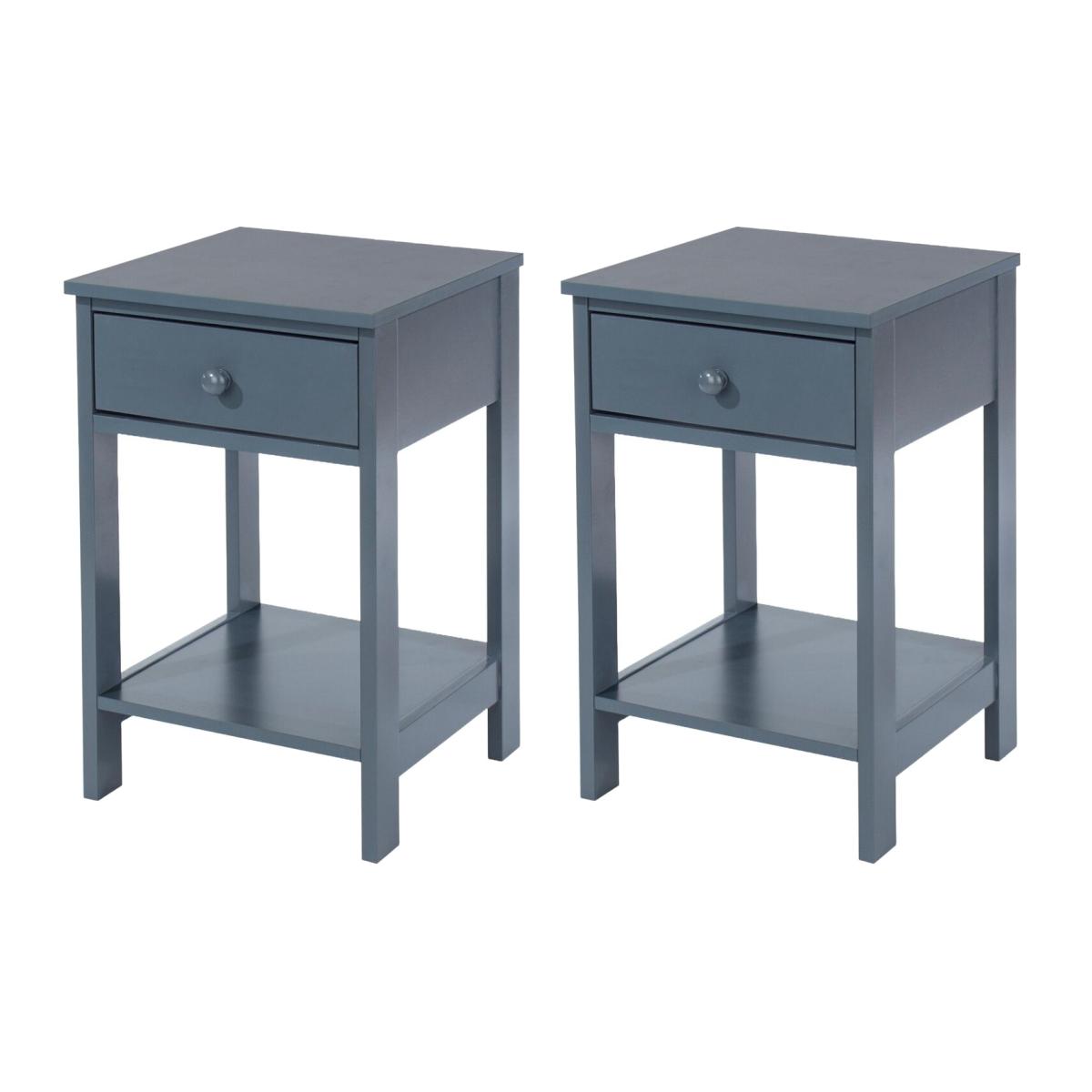 Set of 2 Shaker Blue 1 Drawer Petite Bedside Cabinets, Midnight Blue - Blue