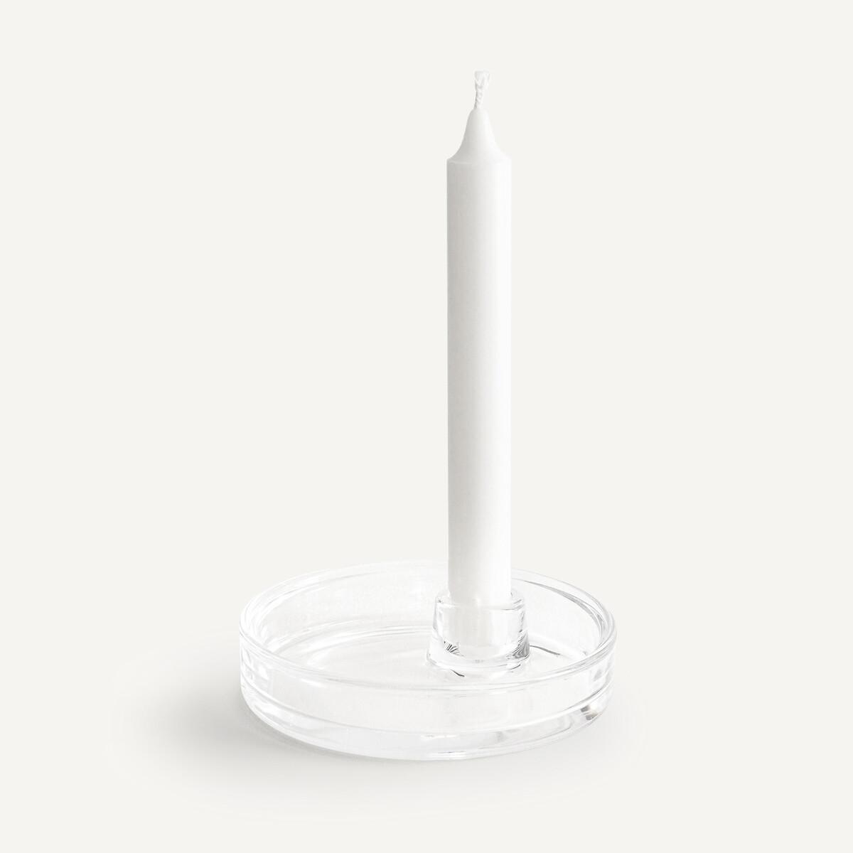 Designed in transparent glass, the Sila oval candle holder offers a unique design. A shape reminiscent of an old inkwell. Elegant and contemporary. Product Details • Set of two transparent glass candle holders • For candle diameter 2cm (not supplied)Dimensions • Height: 3cm • Diameter: 13cm