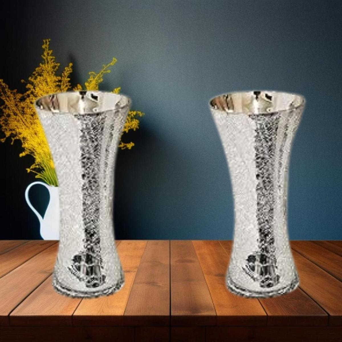 Set Of 2 Silver Crackle Mercury Glass Large Vase - Silver