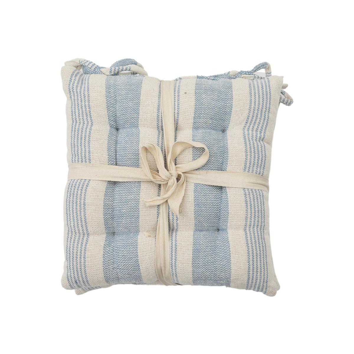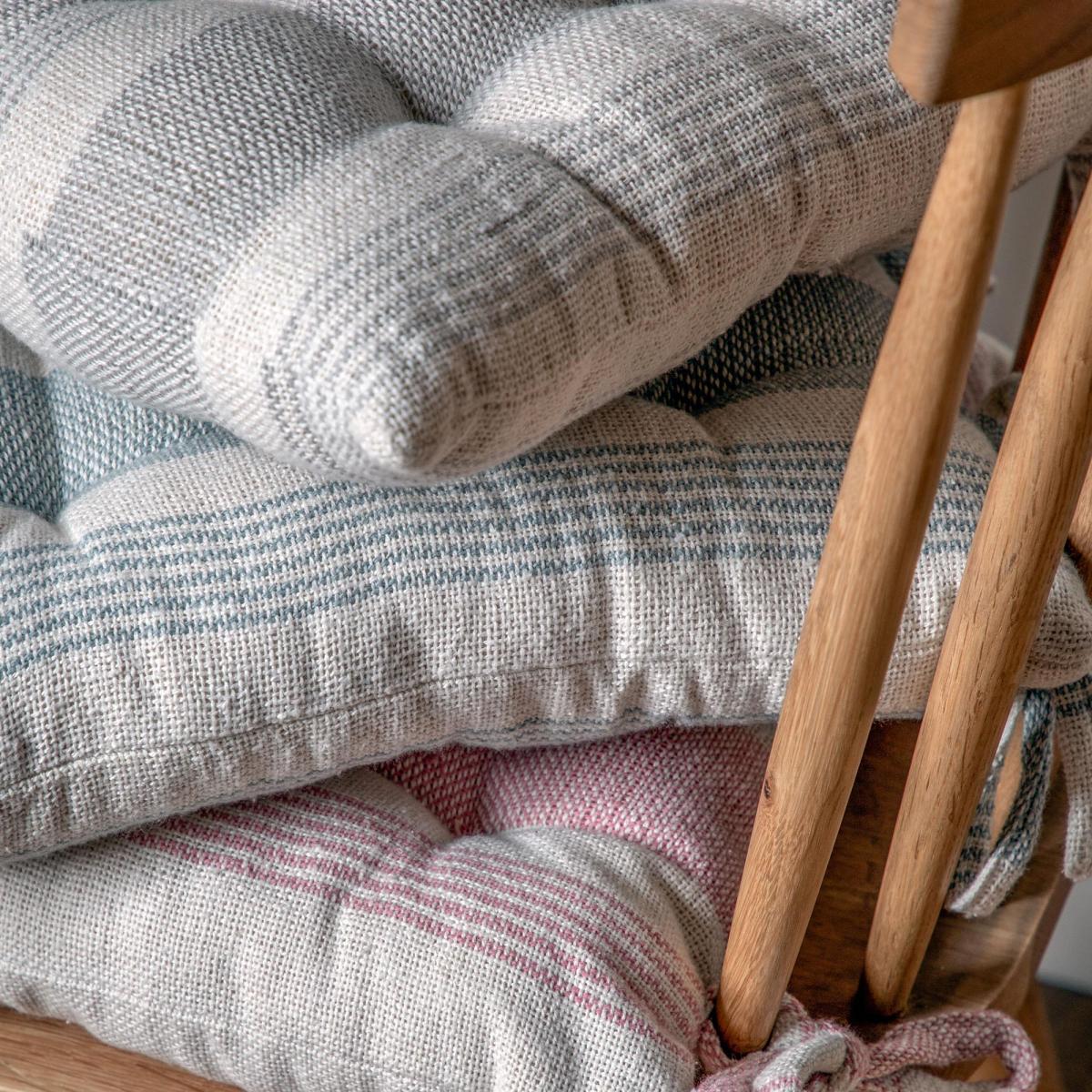 Transform your tired and dull chairs with this set of 2 Simply Organic Seat Pads. Made from woven organic cotton and filled with durable polyester filling, these seat pads will be sure to provide you with a plump and comfortable seat while the neutral colour options and simple stripe design create a delightful appearance. With tie fastenings, these seat pads will stay securely attached to your chair and come presented in a neat cream herringbone ribbon.