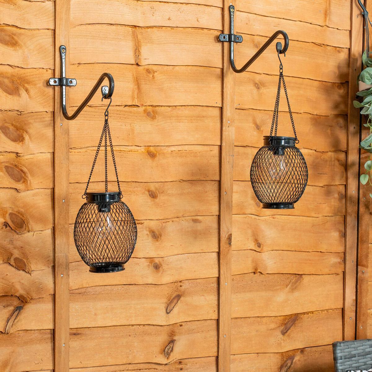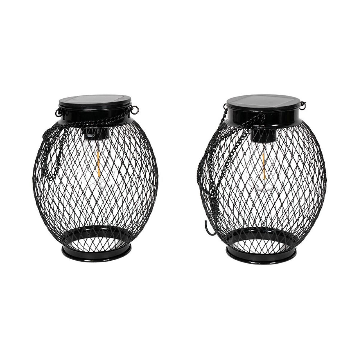Set of 2 Solar Powered Outdoor Mesh Metal Lanterns