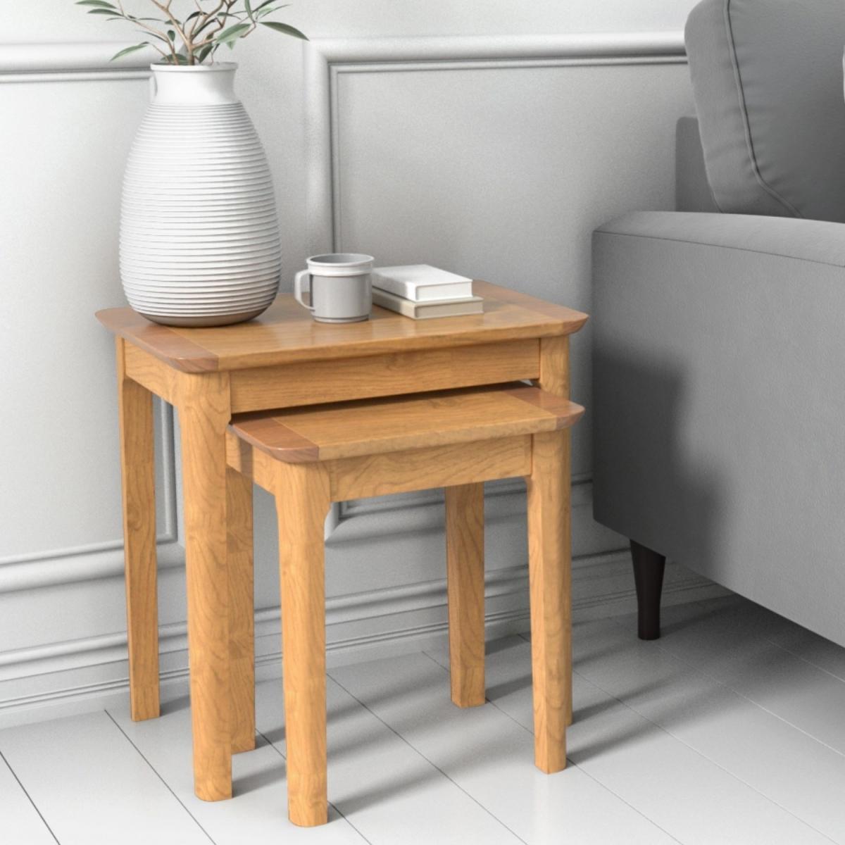 The Adeline nest of tables can be used anywhere in your home and are perfect for placing any ornaments or even a drink. These tables fit neatly underneath each other when you don't need them to save you any space. They boast a traditional and timeless finish, built from oak veneer with solid oak edging.