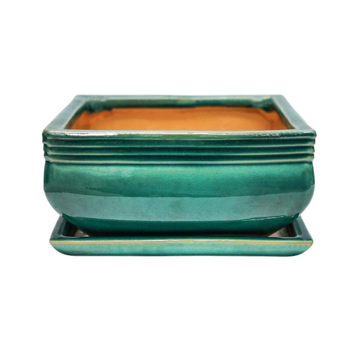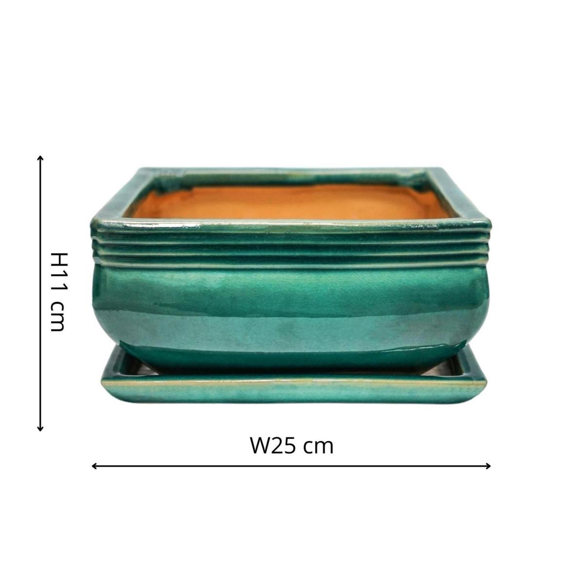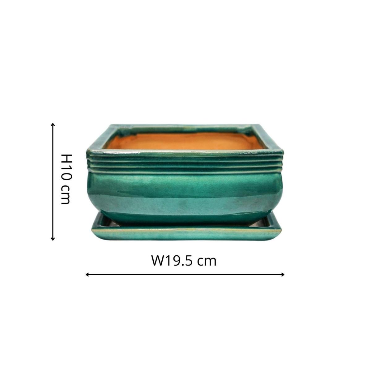 Set of 2 Square Bonsai Plant Pots Teal (Blue)