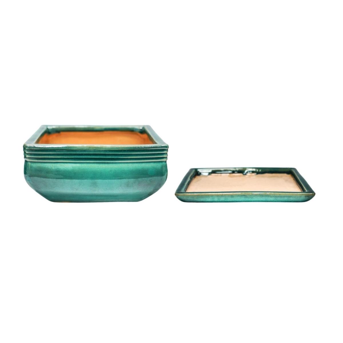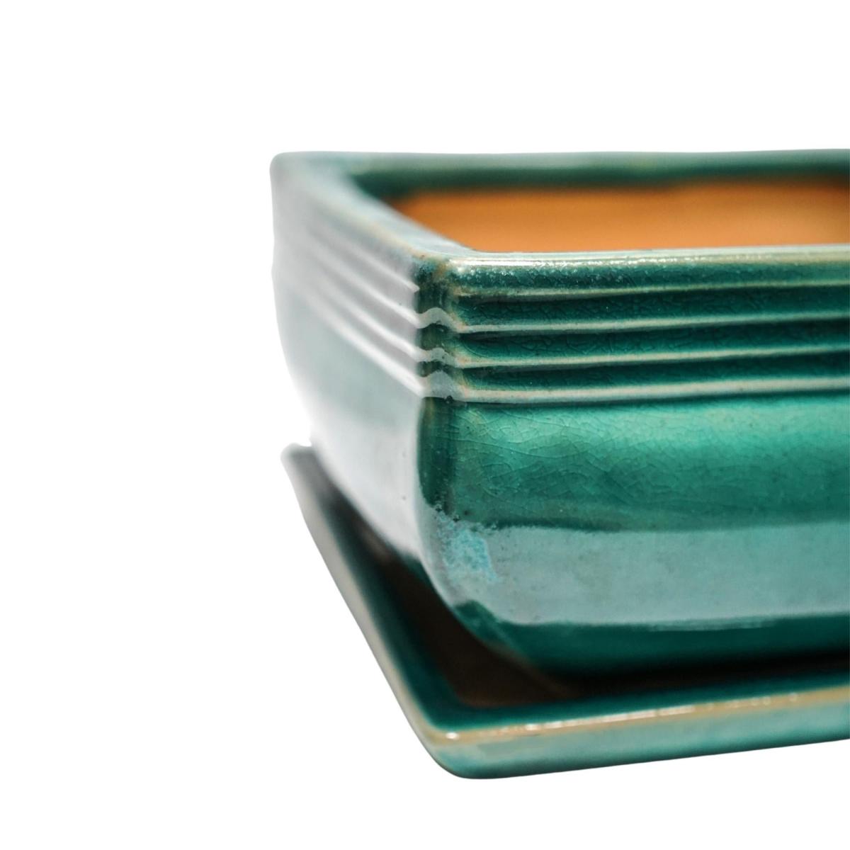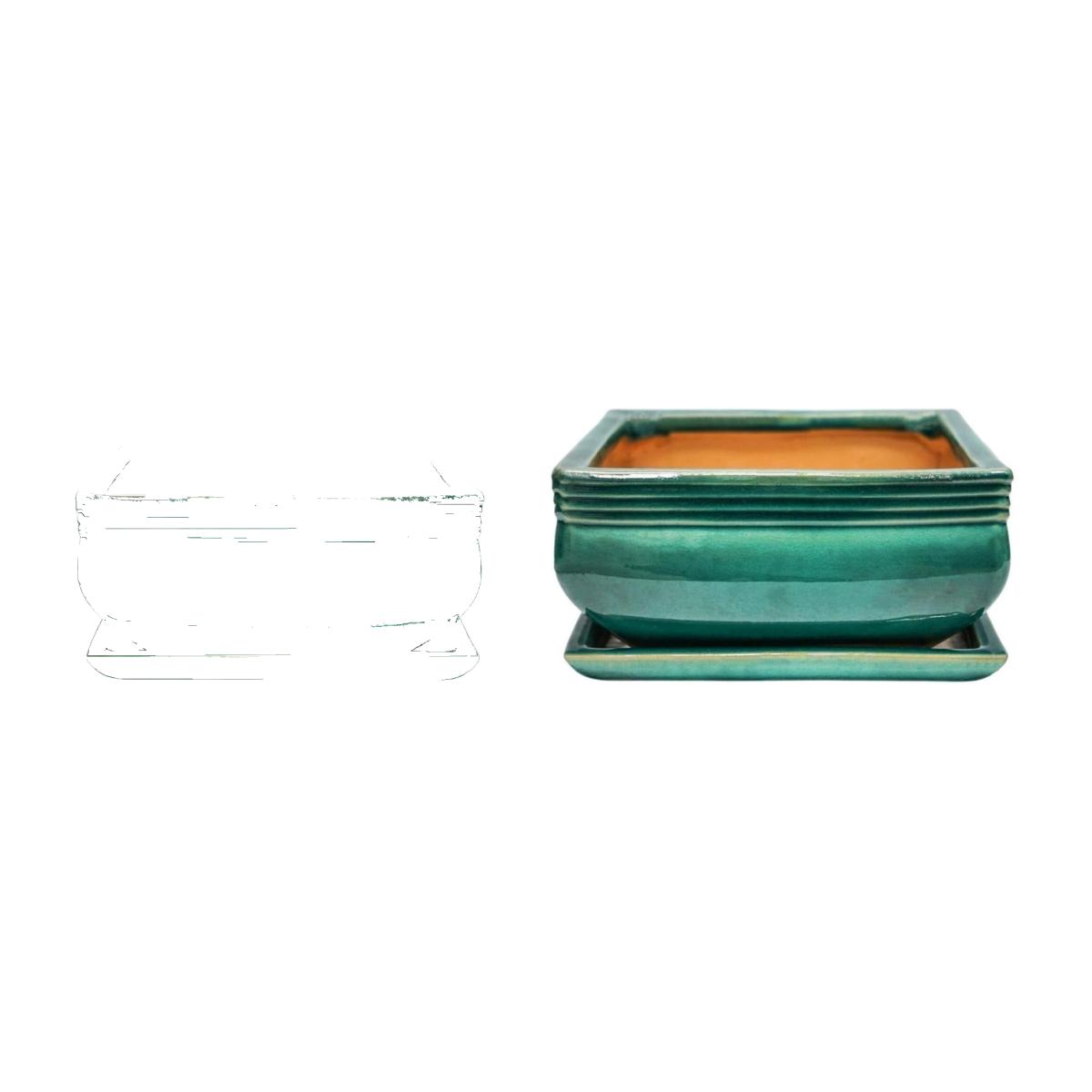 Set of 2 Square Bonsai Plant Pots Teal (Blue)