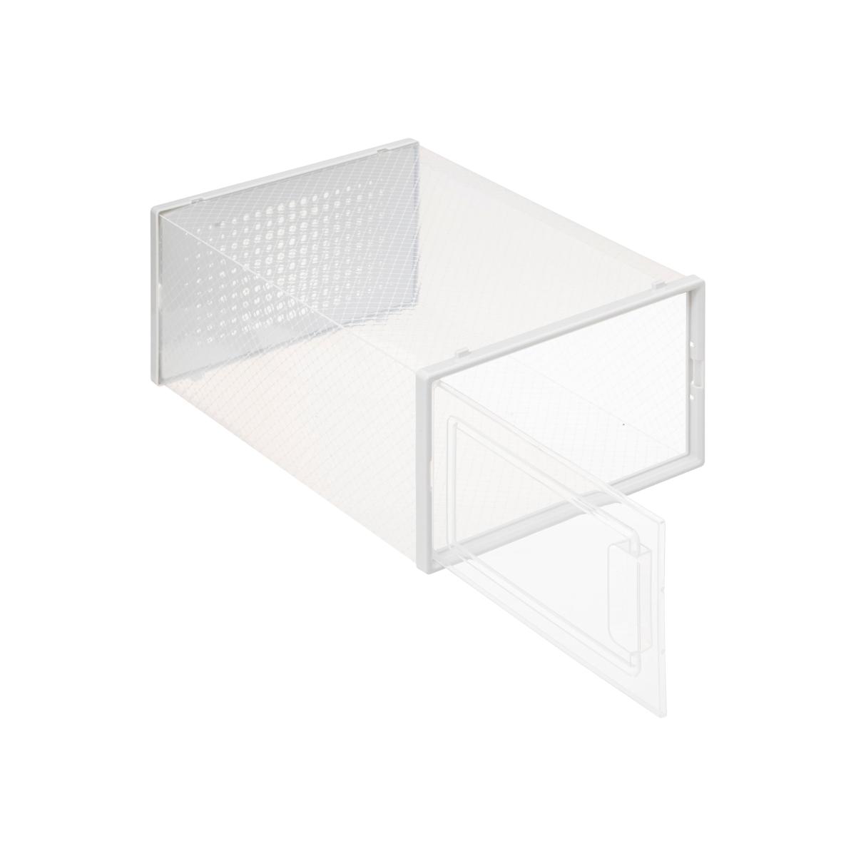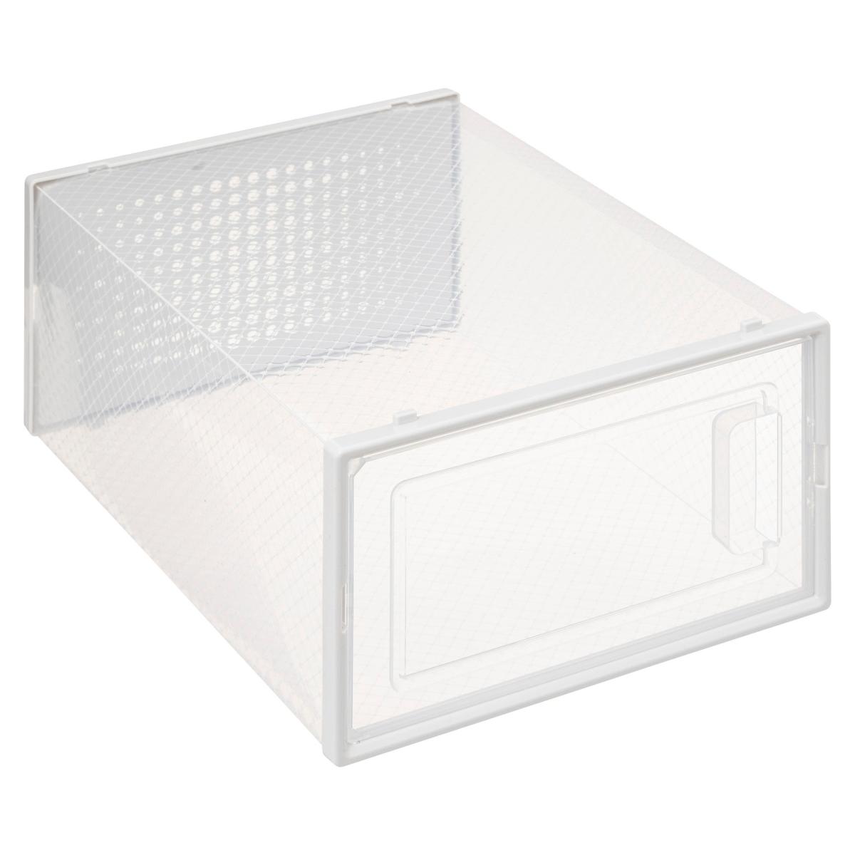 * Set of 2* Made from clear plastic* Stackable design* Includes air holes* Large design Breath life into your shoes by storing them in these transparent plastic storage boxes, with a stackable design and air holes for breath-ability.