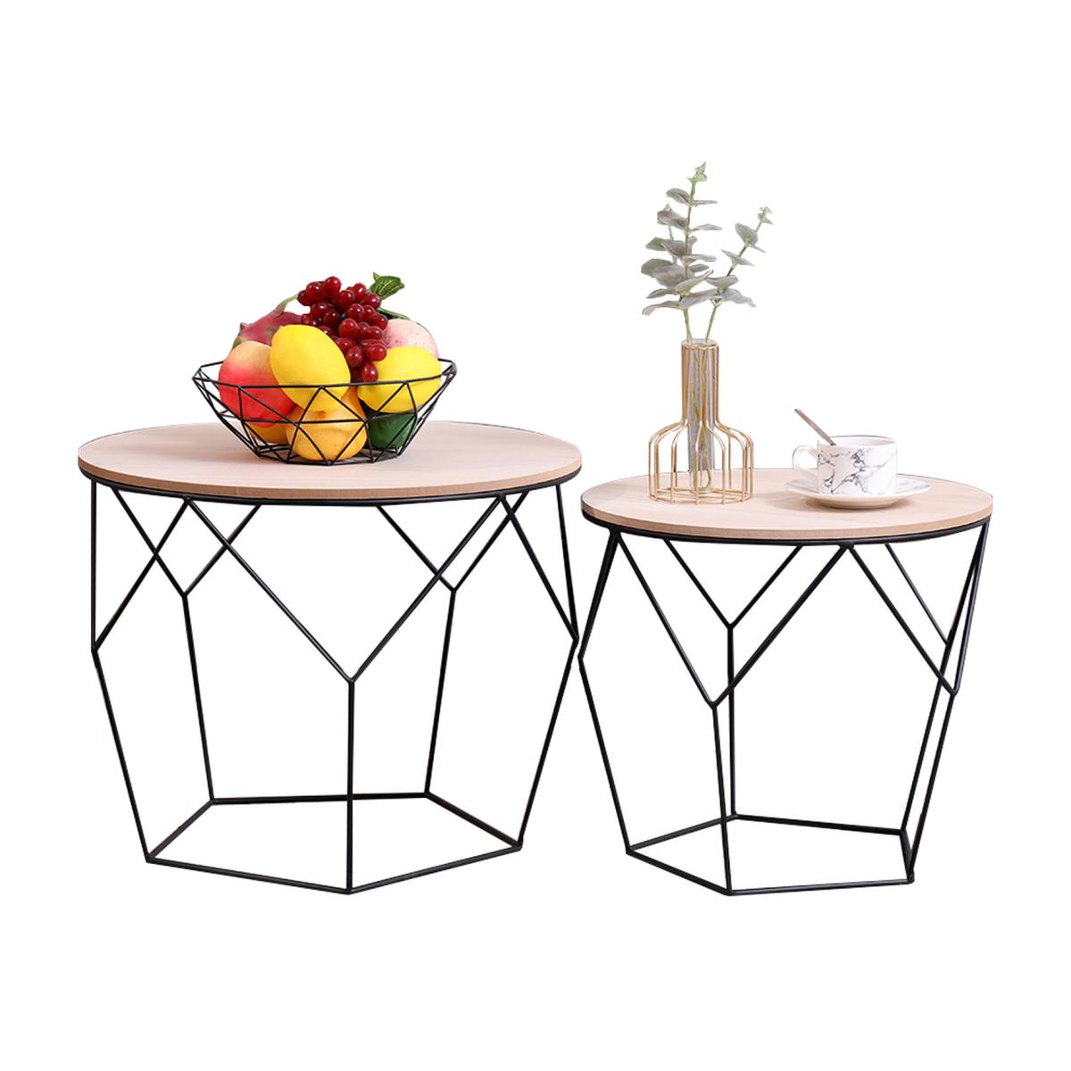 A Versatile and Stylish Accent for Any Room, this set of 2 nesting side tables provides hidden storage and workspace in a compact footprint. Use as side tables, coffee tables, plant stands or nightstands. The removable baskets stow linens, books, toys and more when not in use but slide back under the tabletops to free up floor space in an instant. The MDF tabletops withstand daily use and wipe clean easily. Reinforced metal frames provide stability holding up to 20kg on each table surface when separated. Stacked together, the combined weight limit is 30kg. The rustic wood and industrial metal pair beautifully for a charming, repurposed look. The rounded silhouettes and mix of matte and distressed finishes allow the tables to blend with any living room. Large Table: 50cm W x 50cm D x 40cm H Small Table: 40cm W x 40cm D x 36cm H