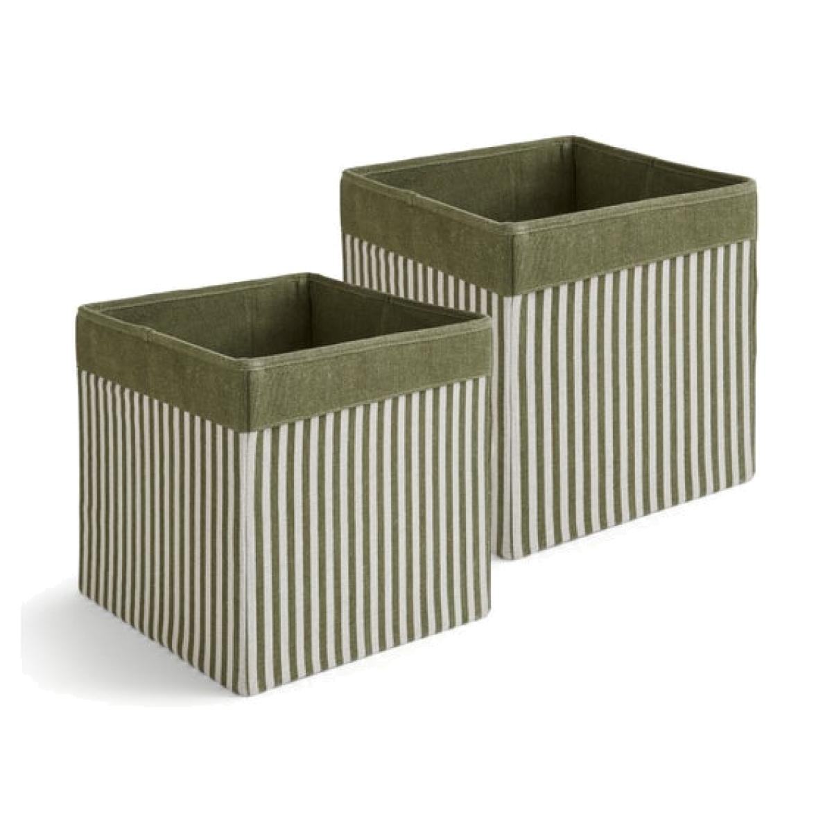 * Space saving boxes * Foldable * Handles for carrying Add a splash of stripe to your storage game with this stylish duo of foldable boxes. The duo-toned fabric and integrated handles make them a smart choice for sorting everything from seasonal clothes to craft supplies. And when they’re not in use, they fold away neatly—tidy living, made easy.