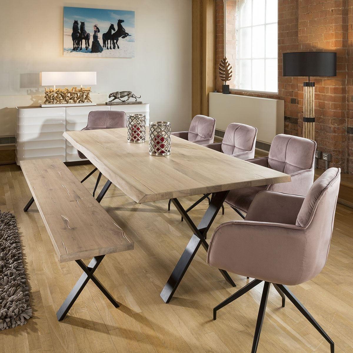 I particularly like these dusky-pink velvet swivel carver chairs for the way they introduce a muted colour accent without dominating a room. The matt velvet upholstery paired with slender black legs works equally well in Scandi-style kitchens, modern industrial lofts or as a soft counterpoint in an otherwise neutral dining area. For styling, team them with a light oak or black metal table and layer in brass-tone accessories or monochrome tableware to keep the look cohesive. The 360° swivel and padded arms make them practical for busy family meals or relaxed dinner parties, while a low-pile jute rug beneath will anchor the set and protect your floor.