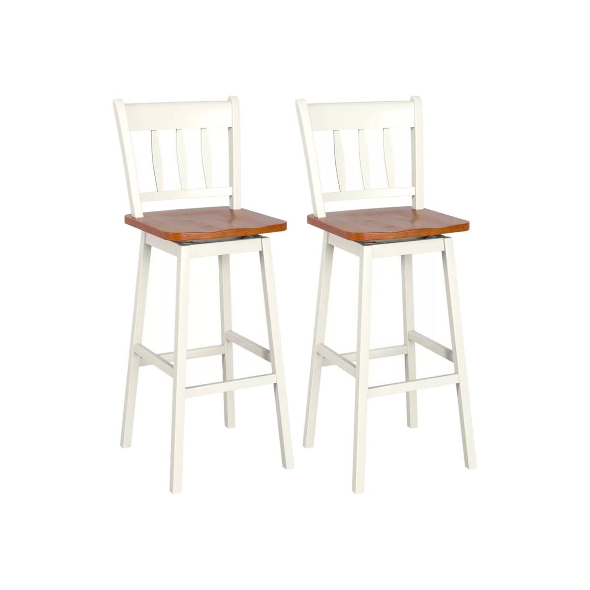 Enhance your kitchen or bar area with this set of 2 wooden swivel bar stools, designed for both comfort and style. Their classic wooden finish adds warmth to any space, while the swivel feature allows for easy movement and conversation. Perfect for counter-height surfaces, these stools provide excellent support and durability for everyday use. Ideal for casual dining, they complement various decor styles, making them a versatile choice. Upgrade your seating experience with these elegant and functional bar stools.