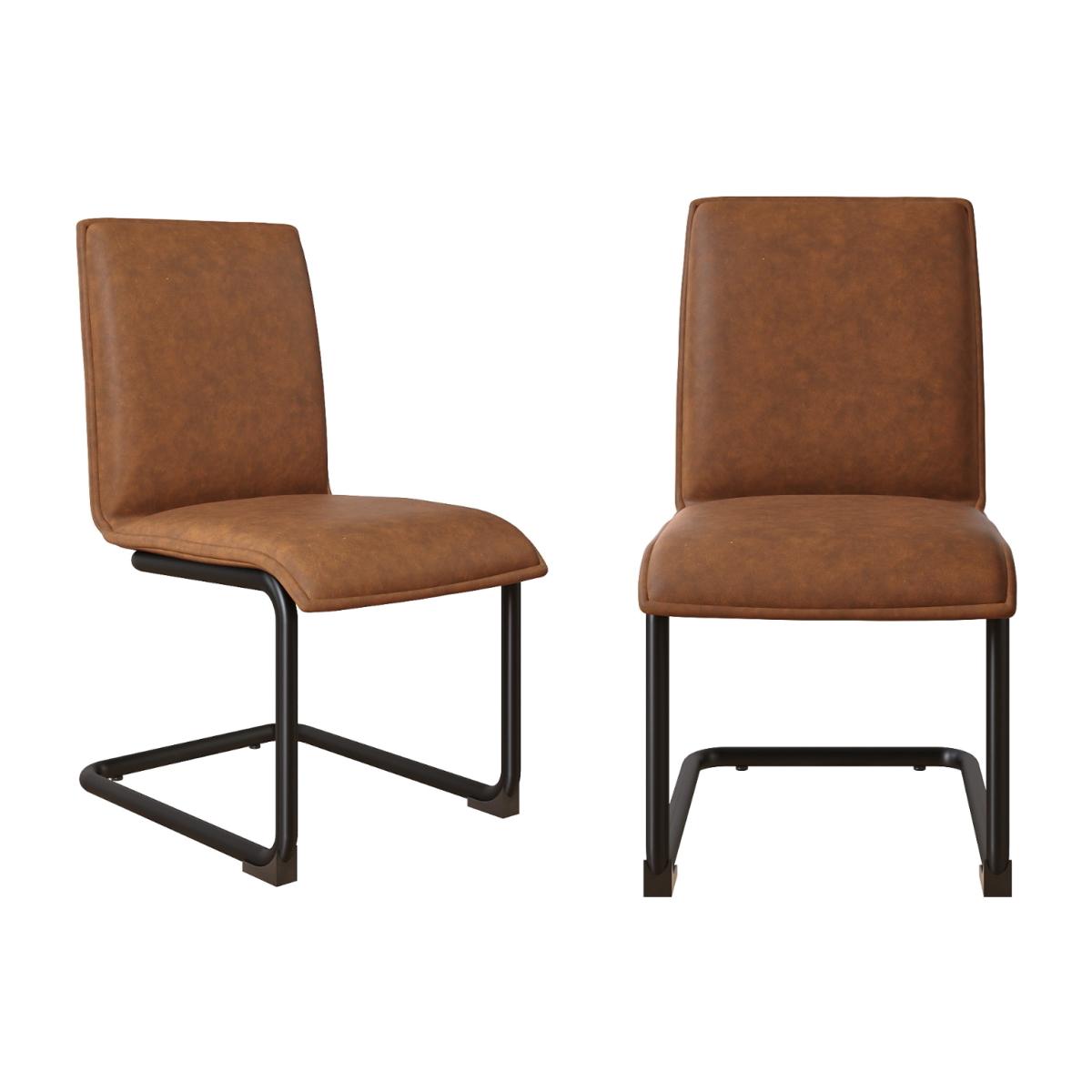 Set of 2 Tan Faux Leather Cantilever Dining Chairs - Lucas