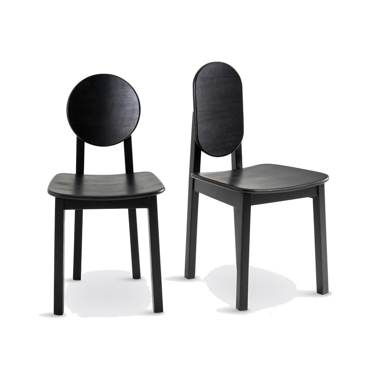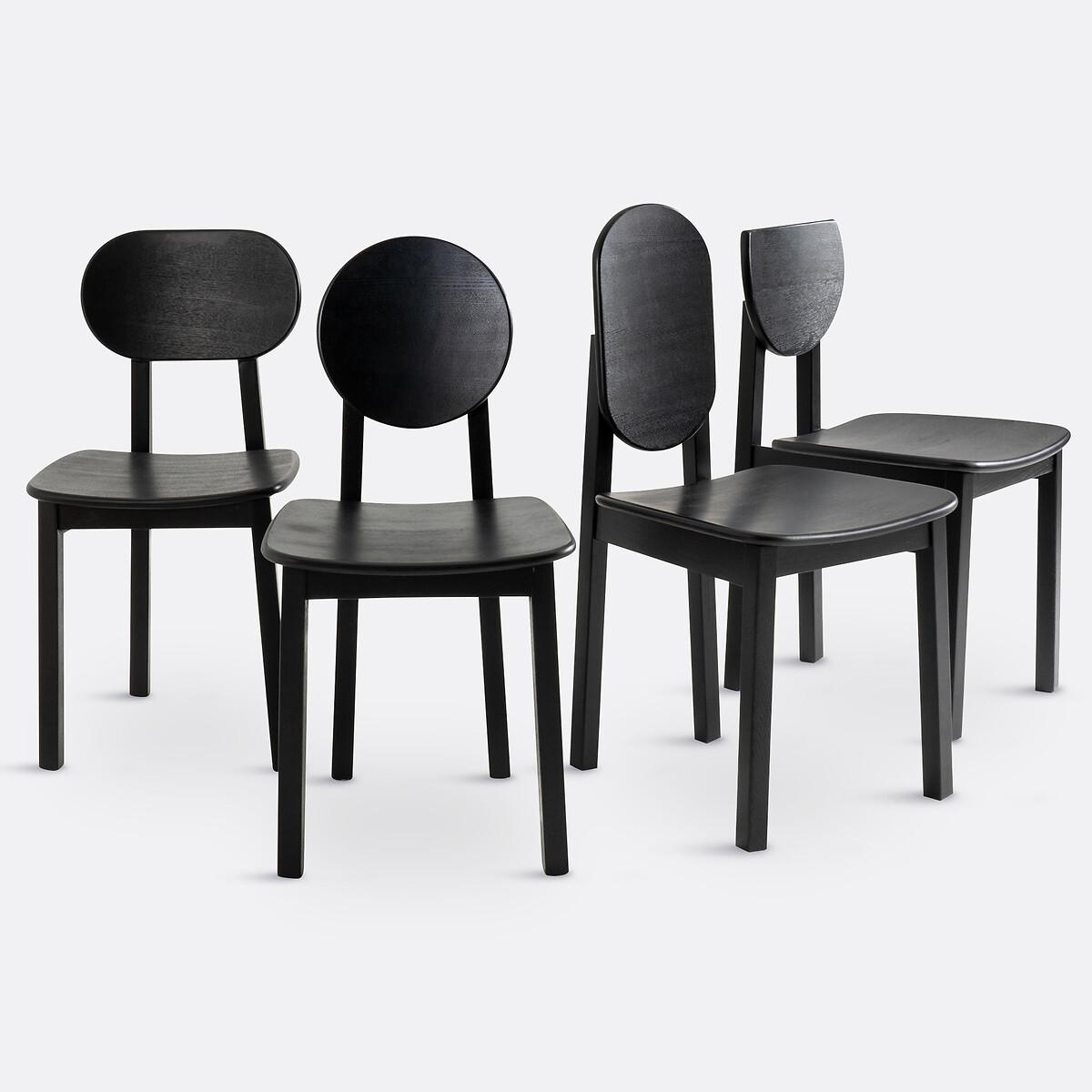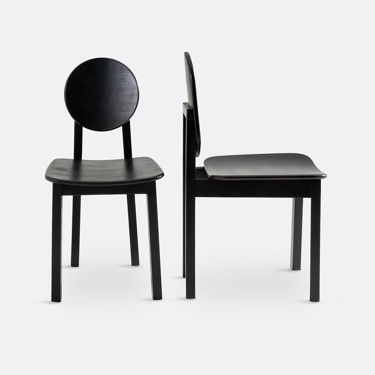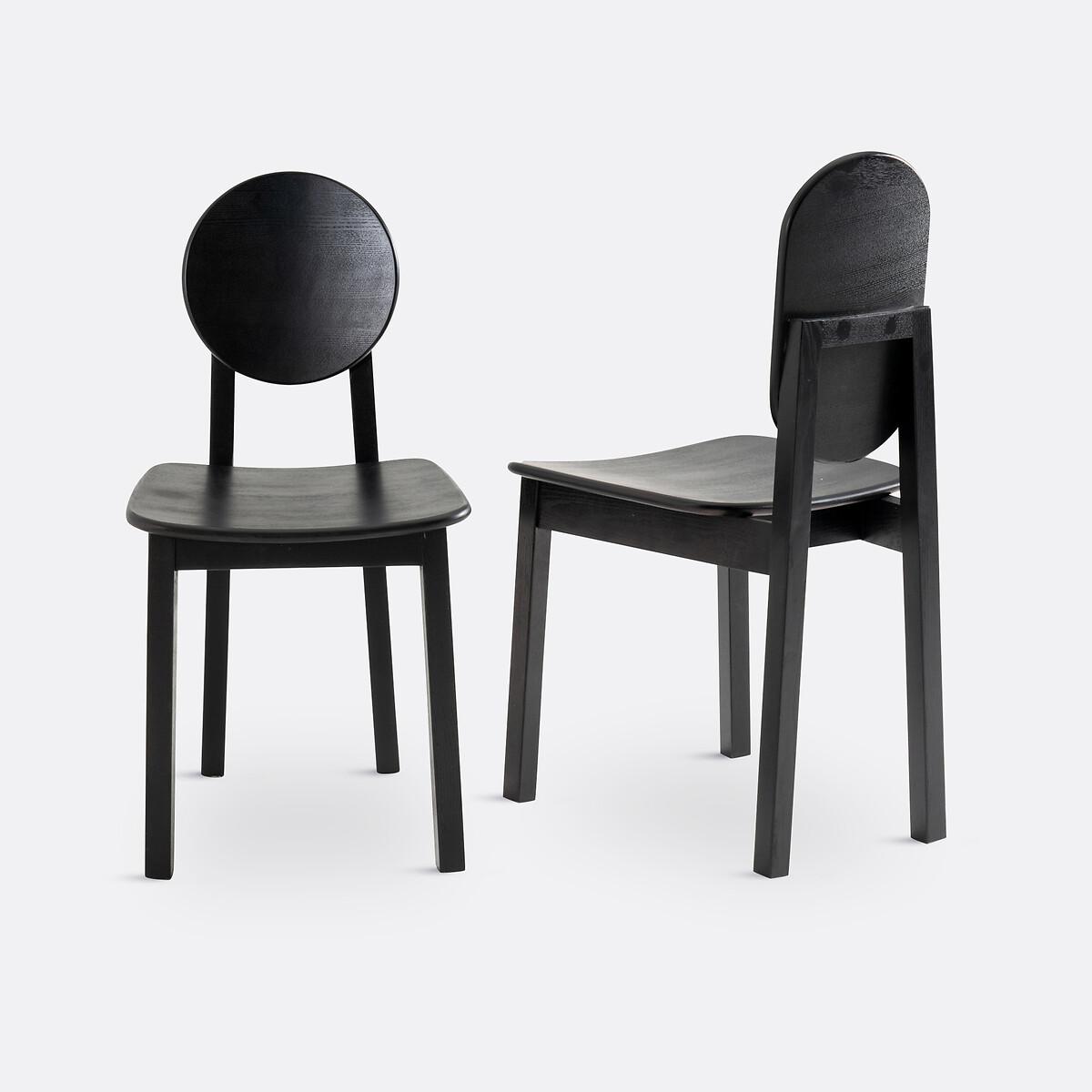 Geometric shapes, cylindrical legs, stained wood. Inspired by African craftsmanship, Tribal chairs revisit traditional shapes with a touch of modernity. Each Tribal chair features a unique back: a perfect choice for lovers of original pieces. A signature design by La Redoute Interiors. Product Details • 2 colours available: black, off-white. Solid ash legs • Seat and back in curved poplar plywood and ash veneer • Nitrocellulose varnish finish • Set of 2 chairs : different back designs. Dimensions • Width: 42.6cm • Height: 86/88cm • Depth: 50.5cm • Seat: L42.6 x H45.5 x D41.5cm • Round back:Diameter 30cm • Oval back: L23.3 x H38.8cm • Sold pre-assembled. • WOOD FROM SUSTAINABLY MANAGED FORESTS. FSC® certified wood comes from forests that are environmentally, socially and economically well managed. Dimensions and weight of parcel • 1 parcel • L62 x H98 x D48cm. 13kg.