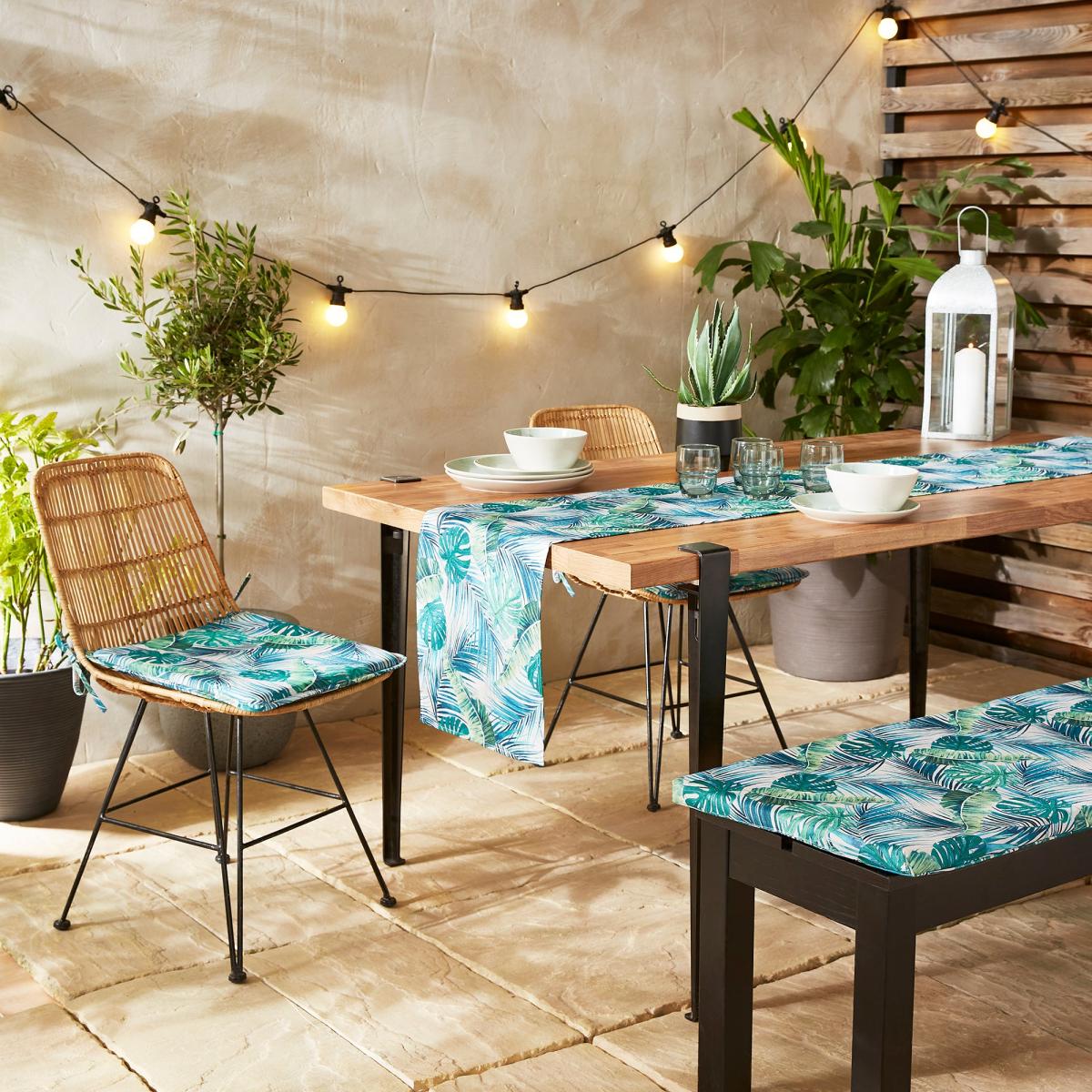 Add a touch of comfort to your garden seats with this colourful tropical leaf printed seat pad with a comfortable foam filling. The cover has a wipe-clean and water resistant surface so it's suitable for outdoor and indoor use. Good things come to those who coordinate, so why not pair this seat pad with the matching items available to purchase separately?.