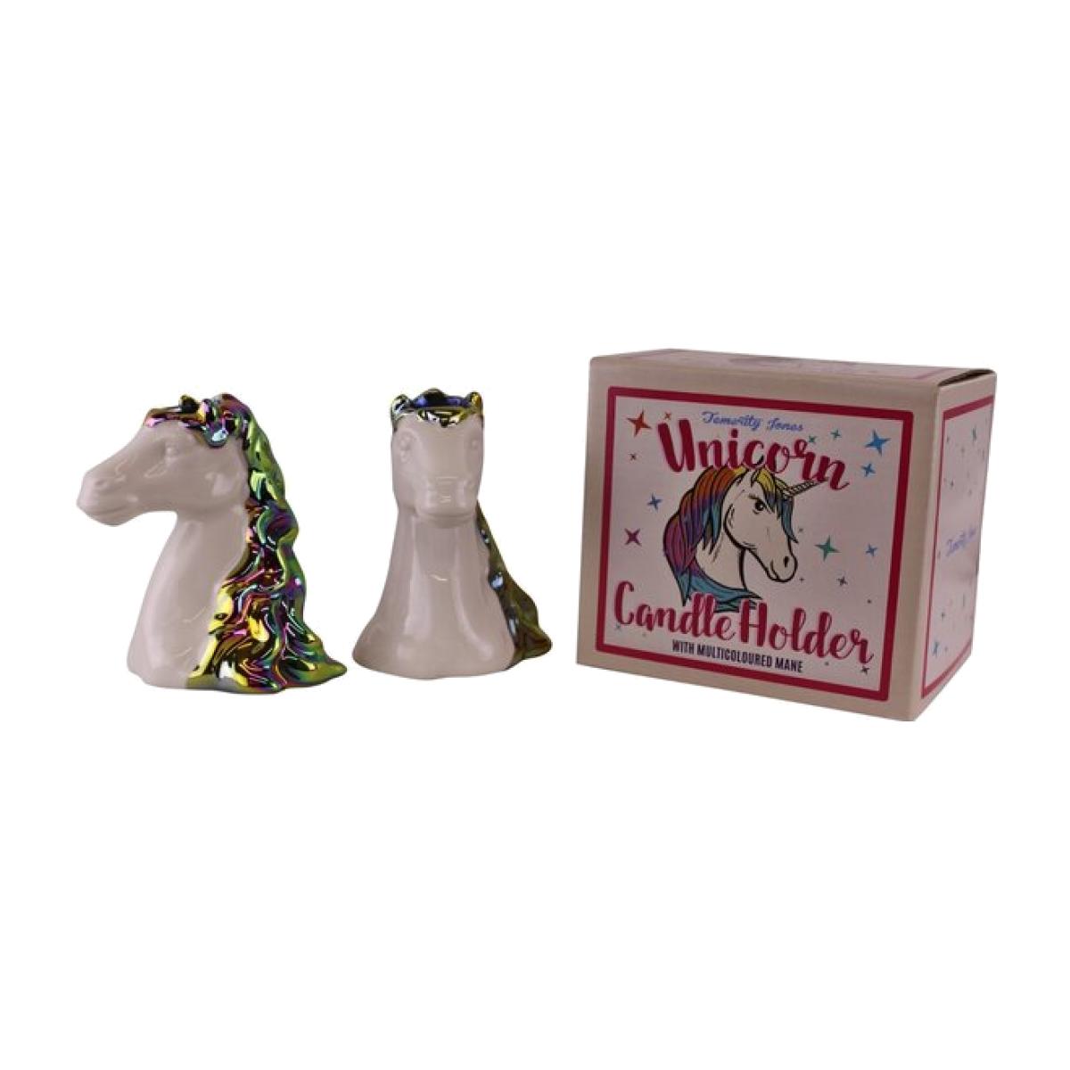 This fun set of 2 unicorn head candle holders will fit a tapered candle and add fun to your dining table or mantelpiece.