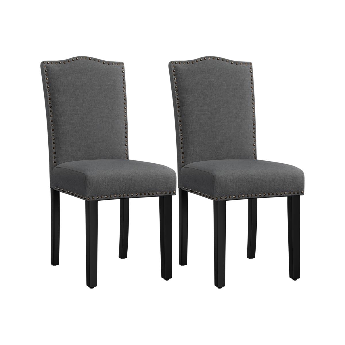 Set of 2 Upholstered Dining Chairs with Nailhead Trim - Dark Grey
