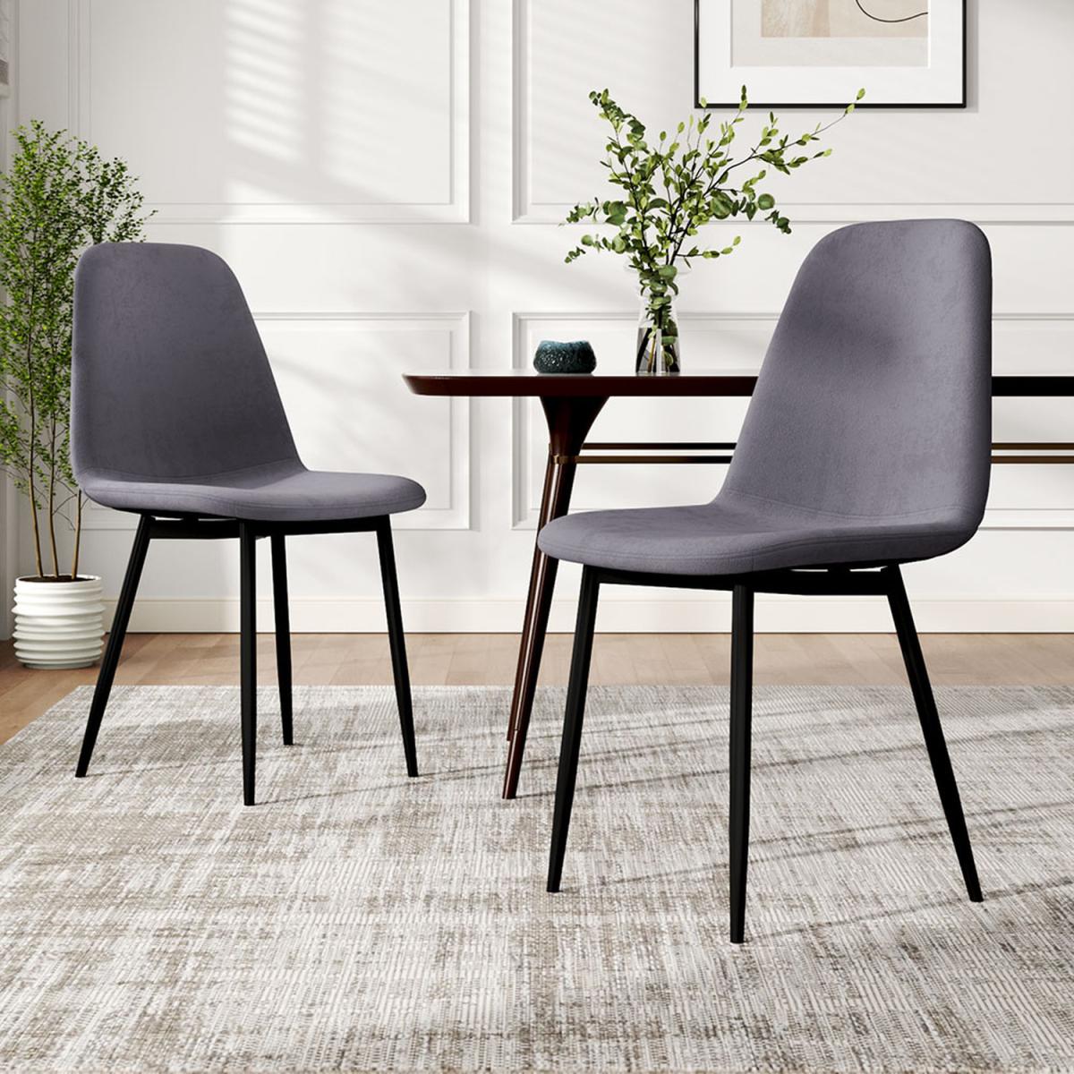 Set of 2 Upholstered Velvet Dining Chairs with Slim Legs - Grey