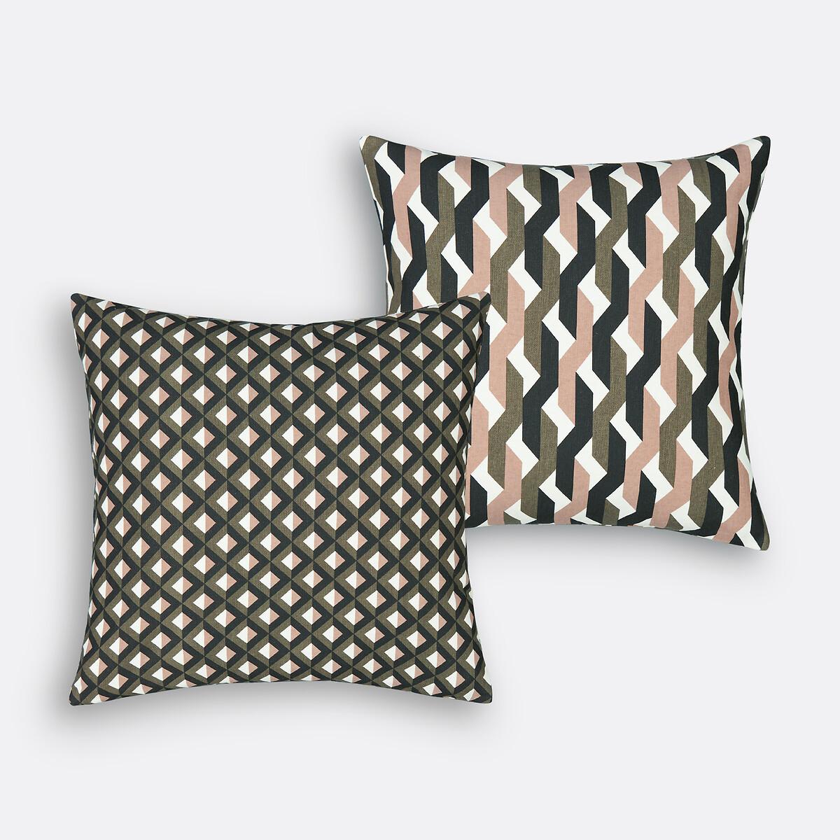 Graphic, vibrant, hypnotic: the abstract patterns of Valongo recycled cotton cushion covers are inspired by cubism. Bold, this rhythmic geometric pattern instantly adds an arty note to an interior. Designed by La Redoute Interiors. Product Details • 100% cotton • Recycled cotton • Print front and back • Different graphic pattern on each cover • Zip fastening • Sold in packs of 2 • Dimensions • 40 x 40cm • Recycled cotton. Using recycled cotton is all about conserving resources and reducing waste. • OEKO-TEX® Standard 100. Standard 100 certification by OEKO-TEX® tests textile products for harmful substances via an independent, international label.
