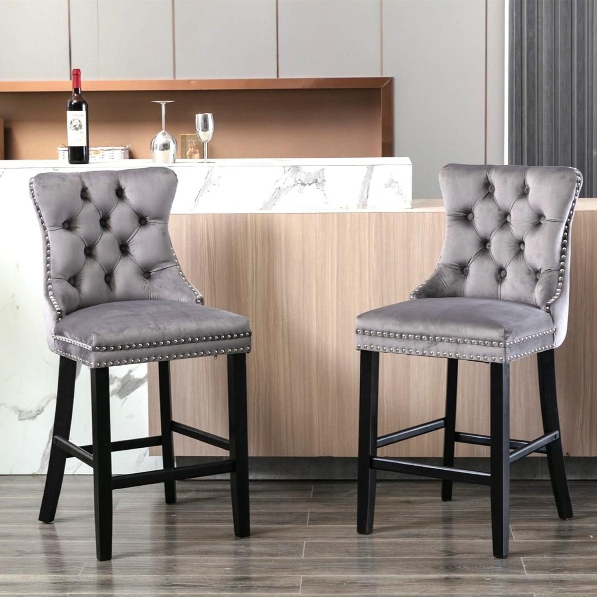 These barstools are made of high-quality velvet fabric, which is thick and luxurious, the touch is very delicate. This velvet bar chairs set featuring a very modern mid-century look. Velvet bar stools feature with buttons and nailheads for a modern and classic look that suits a variety of home styles. It can be used as your kitchen bar stool, breakfast bar stool, kitchen island bar stool, counter stool, high stool and more. The bar chair's frame and legs are made of solid wood with enough strength to hold up to 300 pounds. Please use the instructions and assembly tool inside the package to complete the assembly. Adjustable pegs on the legs allow you to adjust the height of the legs. With an overall dimension of 62w x 50d x 105h, seat height 59cm. The our counter height chairs come with all the screws and installation manuals needed for a quick and easy assembly. Most people can complete the process in just 20 minutes.