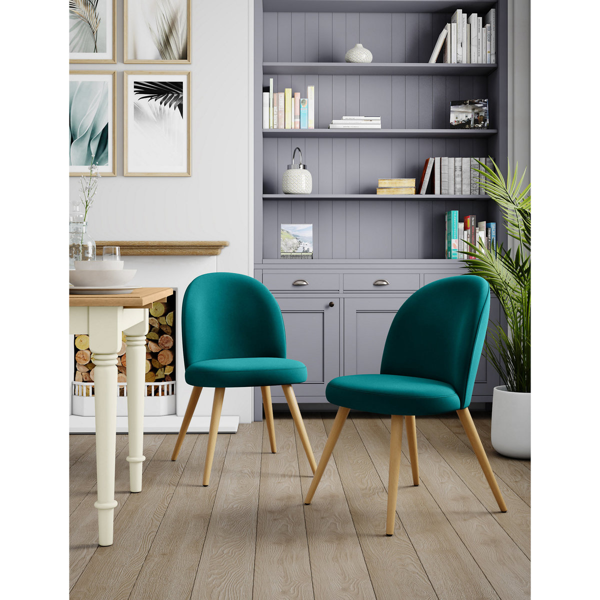 The velvet finish of these dining chairs brings instant luxe appeal to your space. Soft to the touch and with shaped backs, the chairs offer comfort while you dine. The beech and birch wood legs are coated with a matte lacquer for a natural-looking finish. We’re so confident our furniture is built to last, our industry-leading guarantee covers any manufacturing failure on all furniture. That’s our promise, and why our furniture comes with a 10-year guarantee that you can trust. Excludes: outdoor furniture and any issues that are a result of normal wear and tear, improper care or accidental damage.