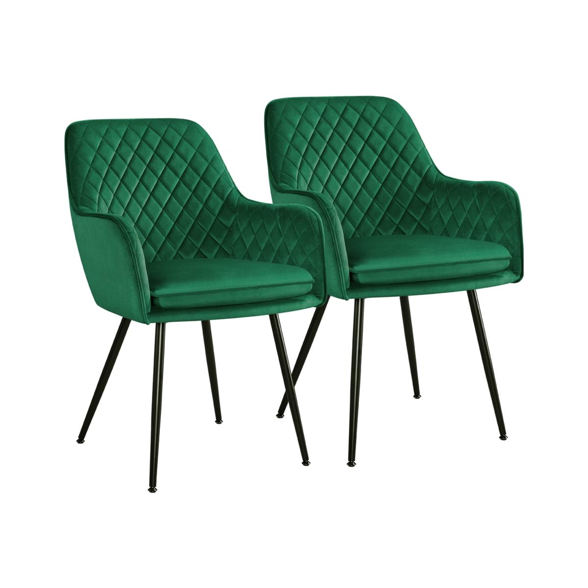 Set of 2 Velvet Fabric Dining Chairs with Metal Legs - Green