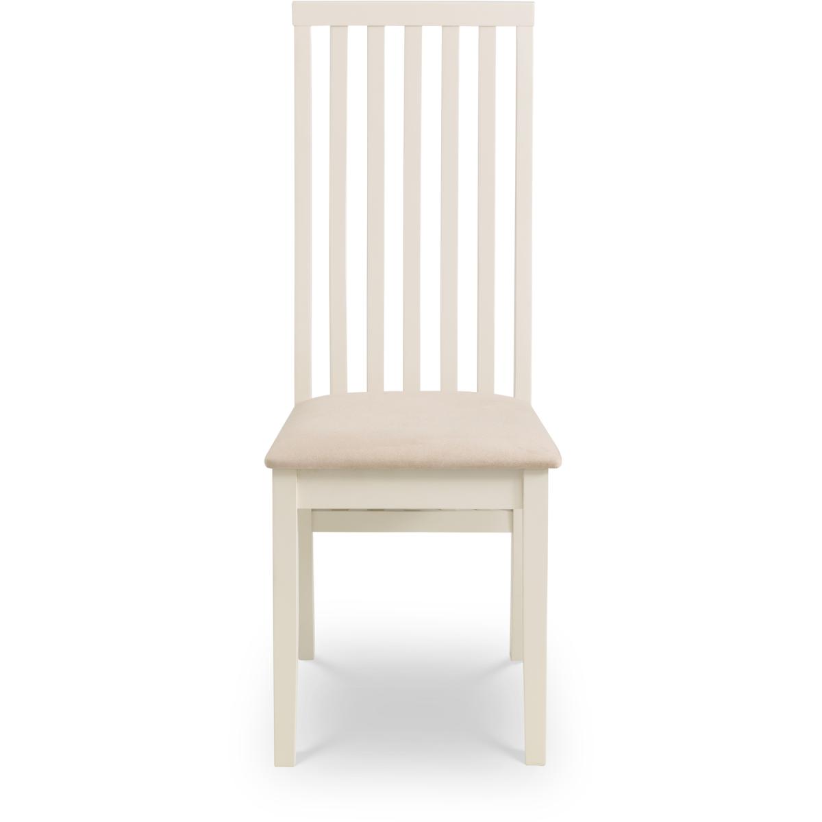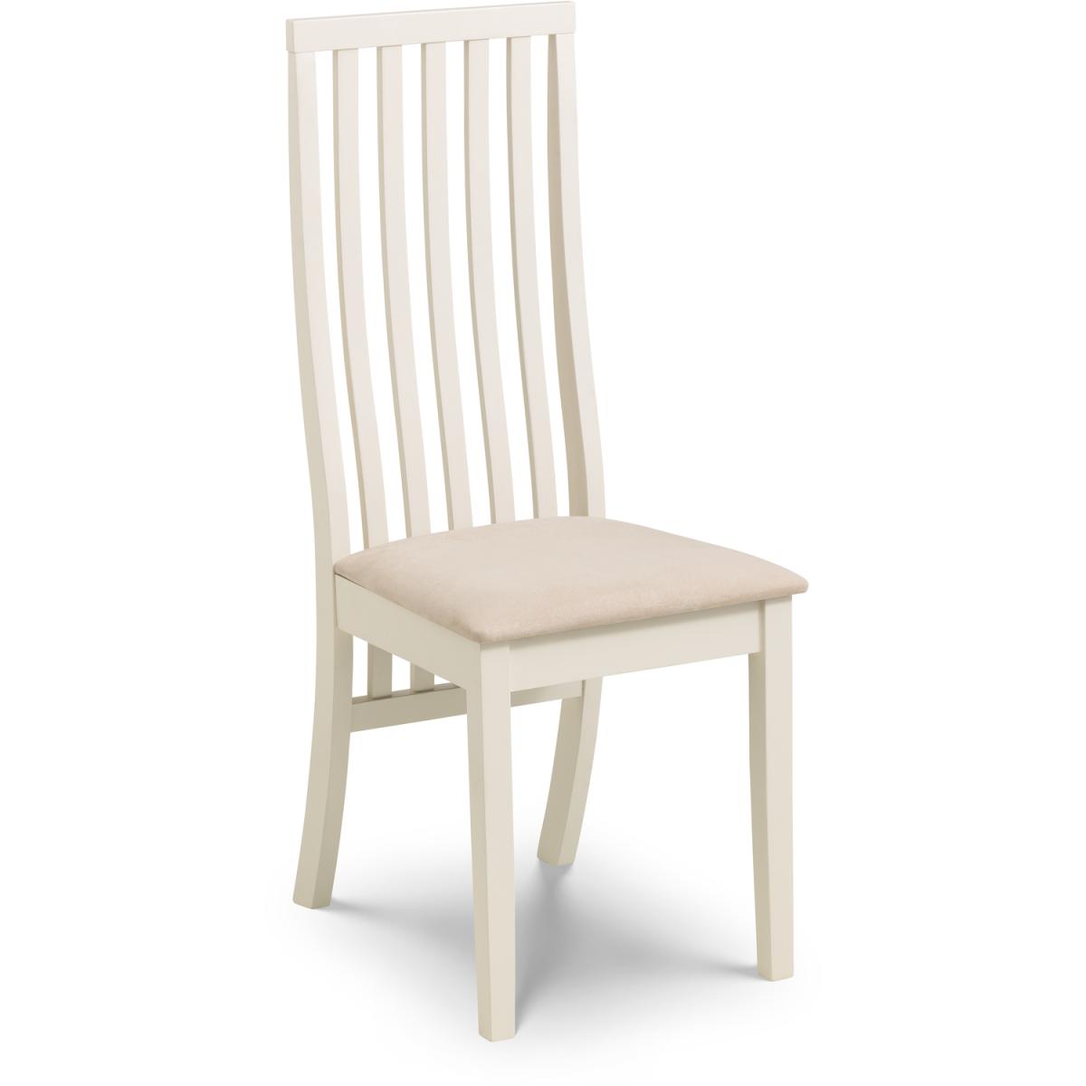 The Vermont dining chair is finished in an ivory lacquer, with a faux suede seat pad adding extra comfort for you and your dinner guests. Featuring a high slat back, this dining chair will create a statement piece in your dining area. The perfect match for the Julian Bowen Davenport dining table.