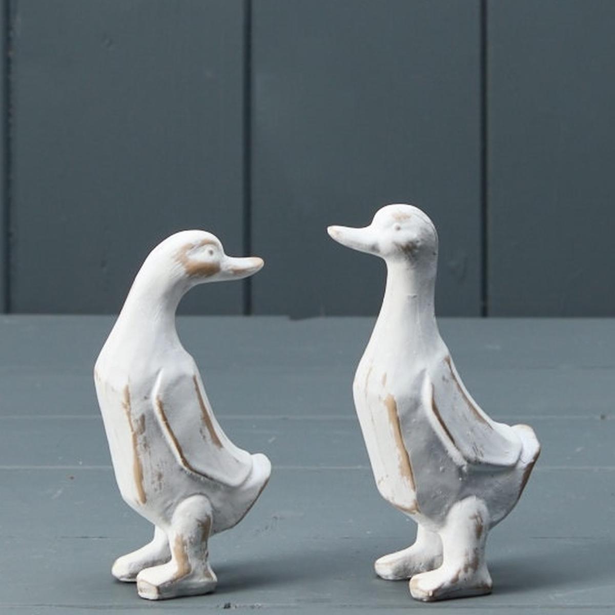 I love this pair of ducks for adding a touch of understated charm to various interiors. They work particularly well in shabby chic, coastal, or Scandinavian styles where natural finishes and soft colours are key. Placing them on a mantelpiece, side table, or open shelf can add a subtle focal point without overwhelming the space. Practical styling tips include grouping them with other neutral-toned artefacts or greenery to create visual interest, and positioning them at different heights for a more dynamic display. Their white wash finish and simple shape make them versatile accessories that bring a cosy, relaxed vibe to any room.