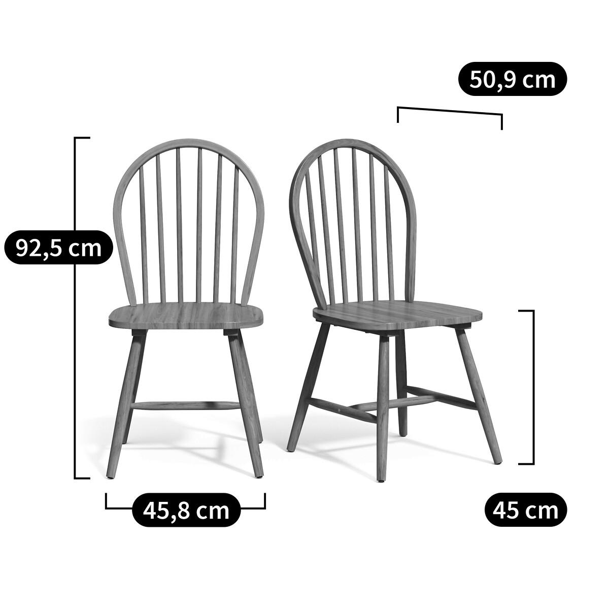 Achieve a charming English country look with these Windsor Spindle Back Chairs. Crafted from natural solid wood, each chair features a traditional spindle back and solid seat, perfect for adding rustic elegance to your dining area. Product Details • Rubberwood bed, nitrocellulose varnish finish. • Spindle back. • Solid seat. • It is advisable to tighten the screws, if necessary, for optimal quality and stability. Dimensions • Width: 45.8cm. • Height: 92.5cm. • Depth: 50.9cm. • Seat: L44.5 x H45 x D42.8cm. Delivery:Assembly required. Available for home delivery. Note! Please check that all access points are large enough to accommodate your delivery (doors, stairs, lifts).Parcel dimensions and weight:set of 2 chairs in 1 parcel • L59 x H50 x D45 cm • 12.7kg