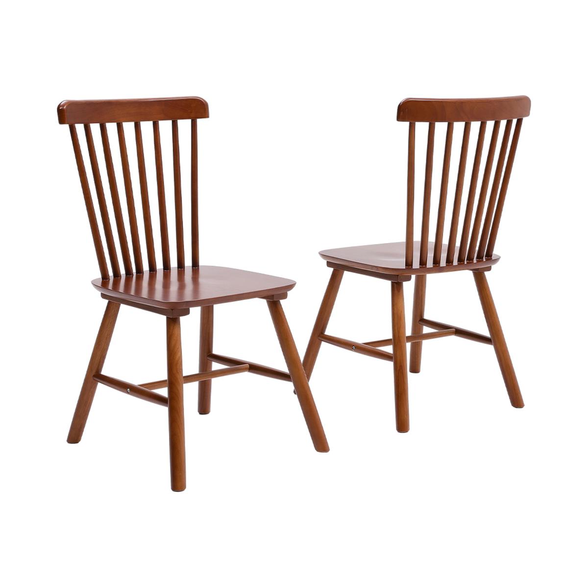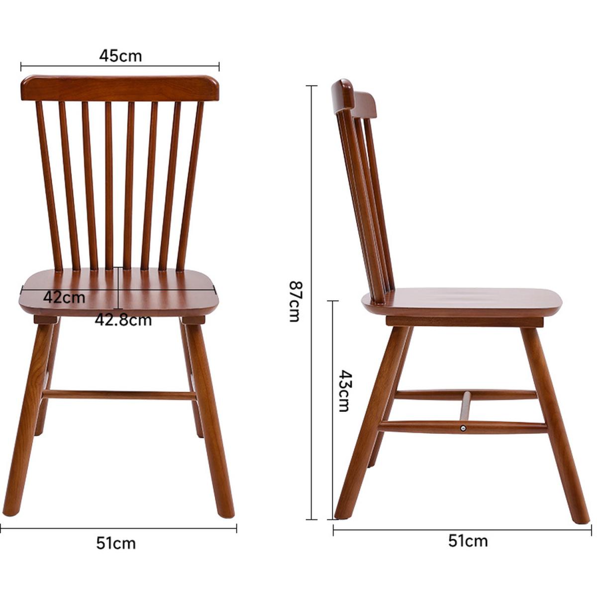 Introducing our livingandhome exquisite set of 2 Wooden Dining Chairs, designed to elevate your dining experience and bring a touch of Nordic charm to your space. Crafted with meticulous attention to detail, these chairs boast premium quality rubberwood construction that ensures durability and longevity. The classic spindle back design adds an elegant touch, creating a harmonious blend of modern aesthetics and timeless appeal. Enhance the ambiance of your dining area with these chairs that feature splayed legs and H-shaped bars, providing a sturdy and secure seating option. The natural wood finish not only adds a rustic warmth but also complements a variety of interior styles, making them perfect for farmhouse-inspired decor and more. Each chair is a testament to both style and functionality. Whether gathered around the dining table, used as cafe chairs, or added to your dressing area, they seamlessly blend into any setting.