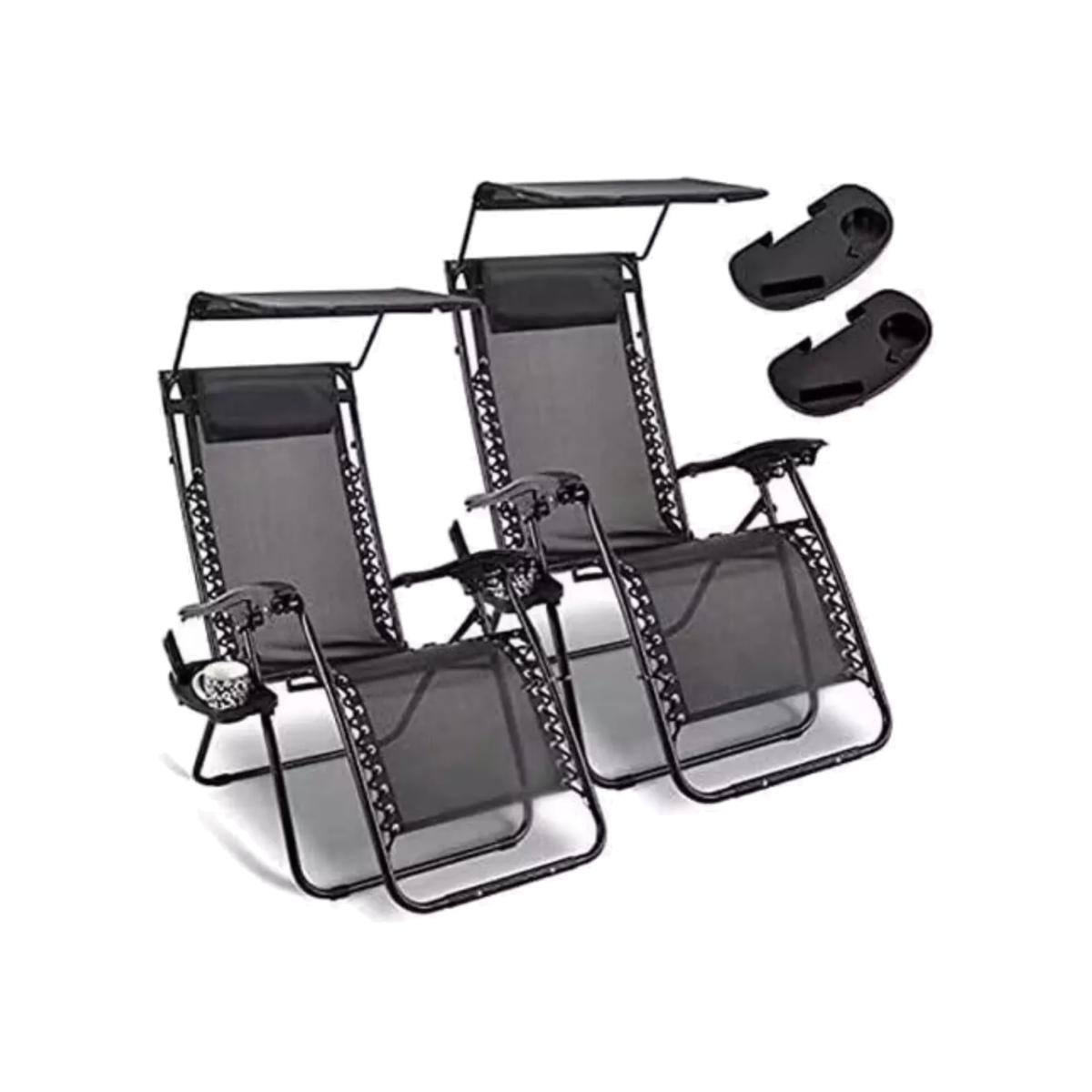 Soak up the sun in style with this set of 2 zero gravity lounge chairs. Featuring a cup and phone holder, a head rest and fully adjustable canopy, you can enjoy a luxurious recline in the sun and protect yourself from its rays if it gets too much. This set of 2 comfortable and easy to use zero gravity loungers are crafted with care and attention to detail from a tubular steel frame and 600. D PVC Oxford fabric. The lightweight powder-coated steel frame will prevent rusting on the chairs and the high-quality fabric ensures a quick and easy clean. Lightweight & portable these sun loungers will have no problems with being transported or stored away. They are easy to move around your garden so you will be able to position yourself in the prime sunny spots. These stylish sun loungers can be effortlessly reclined making them ideal for reading or summer snoozing. The canopies are fully adjustable meaning you can block out harmful UV rays when sun lounging or simply block out the sun if you're trying to read or relax. Use in your garden on your lawn, decking or patio, in the conservatory or by the pool, these chairs are perfect for relaxing or just lounging around in. Ideal to take to the beach, festivals, caravanning and camping. Easily folding down neatly, these lounger can be safely tucked in a cupboard or shed. Ideal for use as an additional seat during gatherings and for those with limited space.