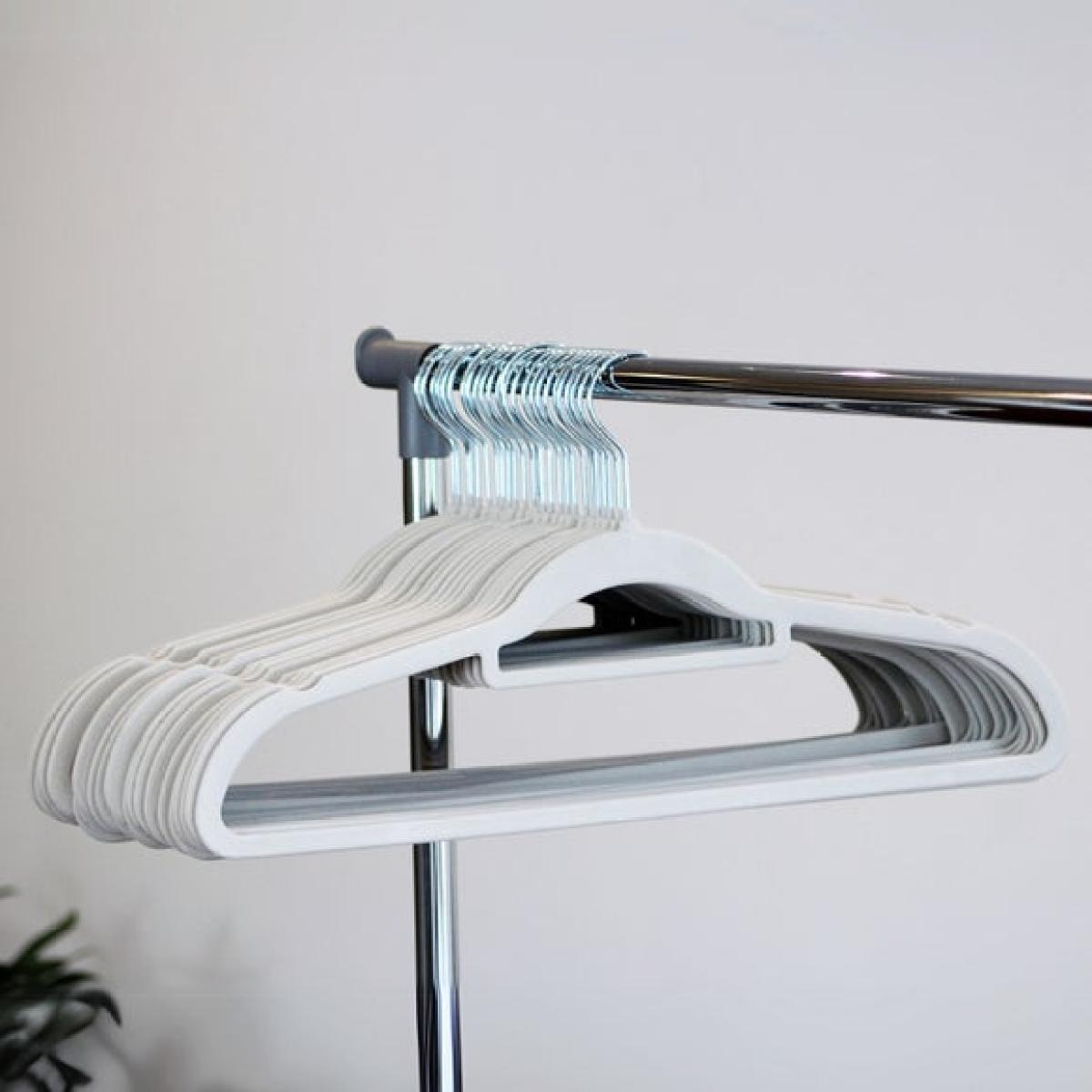 * Set of 25 * Available in a range of colours * Slim design to save space Upgrade your wardrobe with our Set of 25 Flocked Hangers, an essential for keeping your clothes looking their best. The soft velvet surface prevents slipping, while the gentle curves are kind to your garments, preserving their natural shape. Designed to save space with their slim profile, they’re perfect for making room for all your favourites. The 360-degree swivel metal hook adds a touch of practicality, making hanging effortless from any angle. Available in a range of colours, these hangers are as stylish as they are functional. Keep your wardrobe organised, neat, and effortlessly chic.