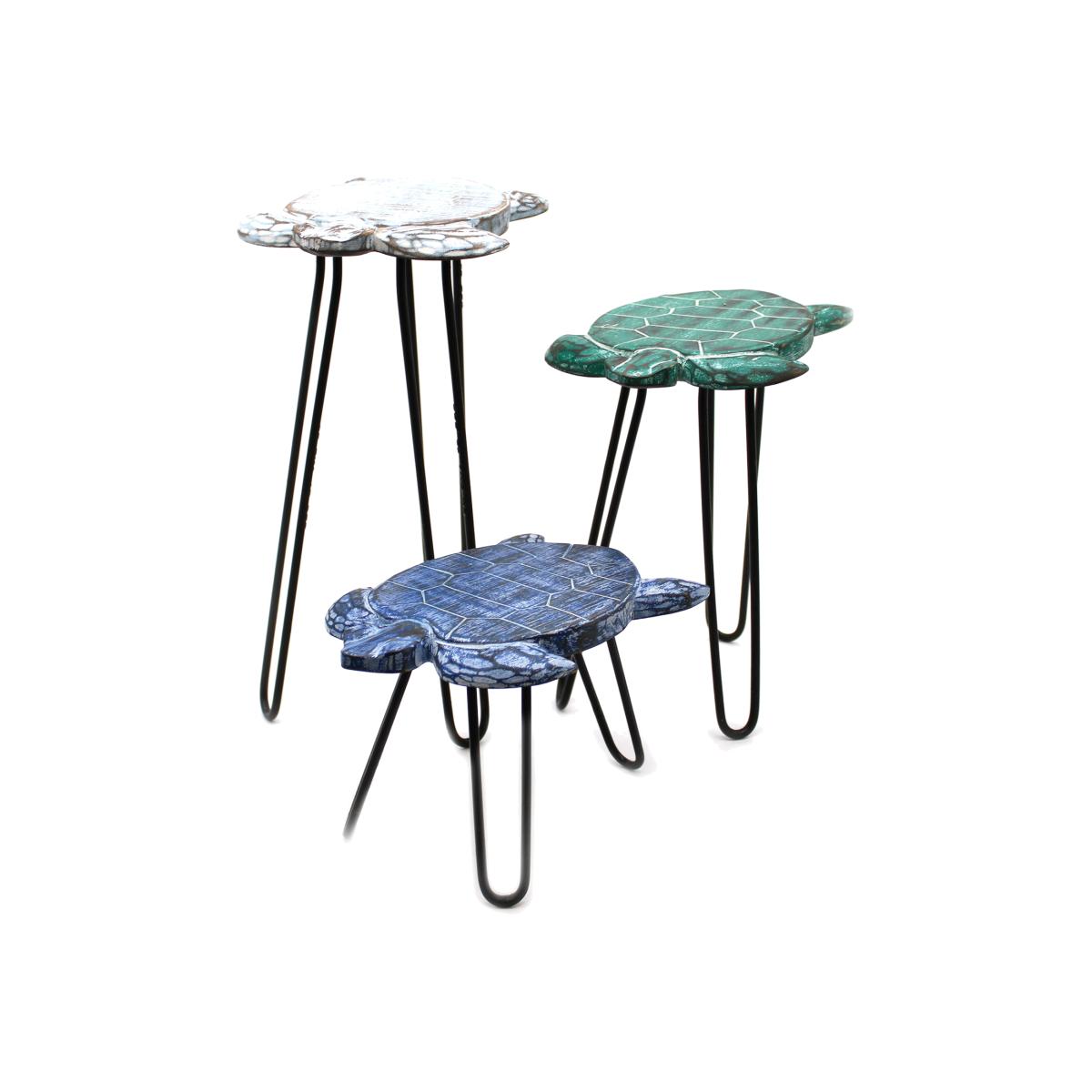 These stylish Tutle-shaped wooden plant stands are built on hairpin legs with solid wood. Look great on their own or tiered into groups and are also very useful as side or occasional tables. The hairpin is polished with black Iron paste to give that smooth finish, which makes them sturdy and lightweight. Come in whitewash, green and natural colours. These beautiful colours given a distressed finish will give you more choices. Delivered flat-packed and can be disassembled to save space when stored or not in use.