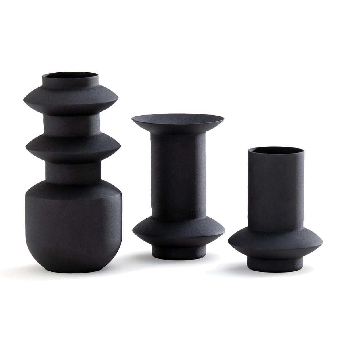 The set of 3 Anaïa textured metal vases. This set of 3 textured metal vases is perfect for giving a contemporary feel to your home: Whether displayed together or apart, they give a truly graphic feel. Product Details • Set of 3 metal vases covered with black epoxy paint with a grainy finish • Discover the Anaïa collection online at La Redoute. Dimensions Vase 1 • Diameter: 10.5cm • Height: 22cm. Vase 2 • Diameter: 10.5cm • Height: 15.8cm. Vase 3 • Diameter: 10.5cm • Height: 13cm