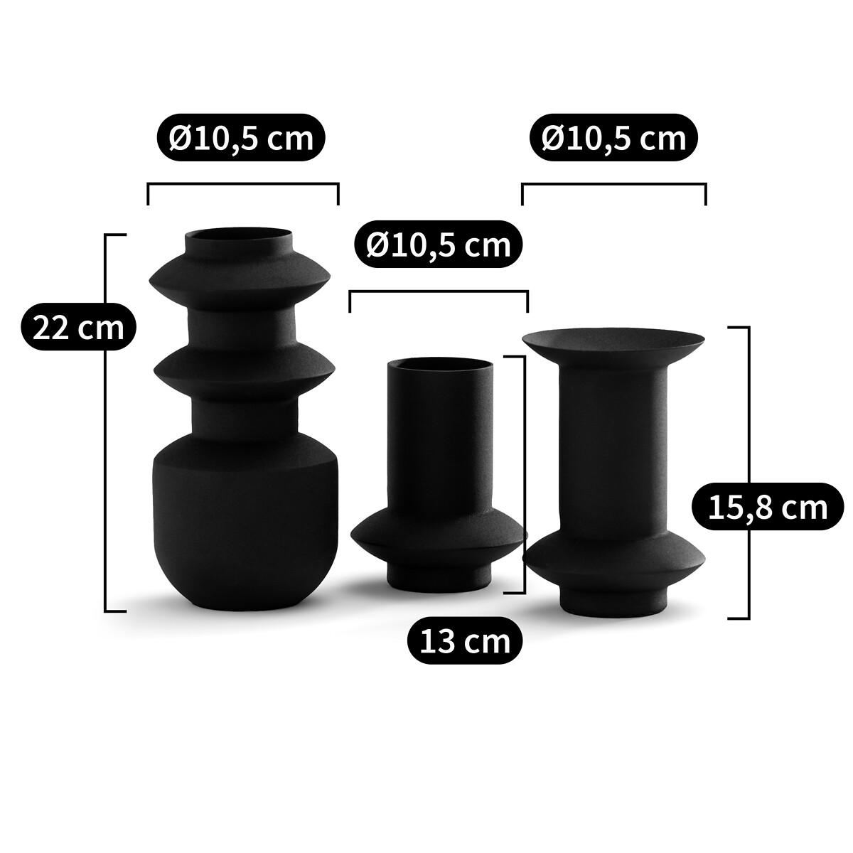The set of 3 Anaïa textured metal vases. This set of 3 textured metal vases is perfect for giving a contemporary feel to your home: Whether displayed together or apart, they give a truly graphic feel. Product Details • Set of 3 metal vases covered with black epoxy paint with a grainy finish • Discover the Anaïa collection online at La Redoute. Dimensions Vase 1 • Diameter: 10.5cm • Height: 22cm. Vase 2 • Diameter: 10.5cm • Height: 15.8cm. Vase 3 • Diameter: 10.5cm • Height: 13cm