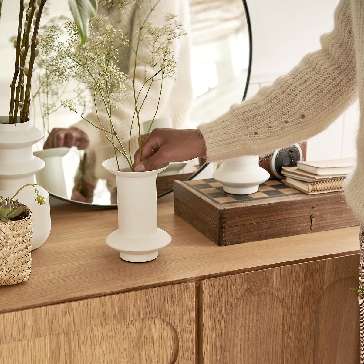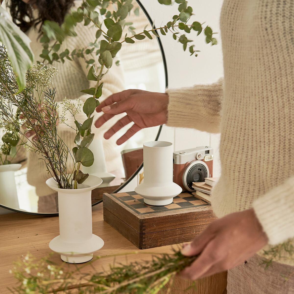 These three textured metal vases are a versatile addition to modern and contemporary interiors, thanks to their sleek, matte finish and sculptural form. I love how they can serve as standalone statement pieces or be styled together for visual interest. They work particularly well in minimalist spaces, urban lofts, or muted neutral palettes, adding subtle texture and depth. Practical styling tips include using the largest vase as a standalone piece or filling the smaller ones with simple stems or dried botanicals to keep the look streamlined. They’re equally stylish when placed on a shelf, coffee table, or windowsill, offering flexibility to enhance both small and larger spaces.