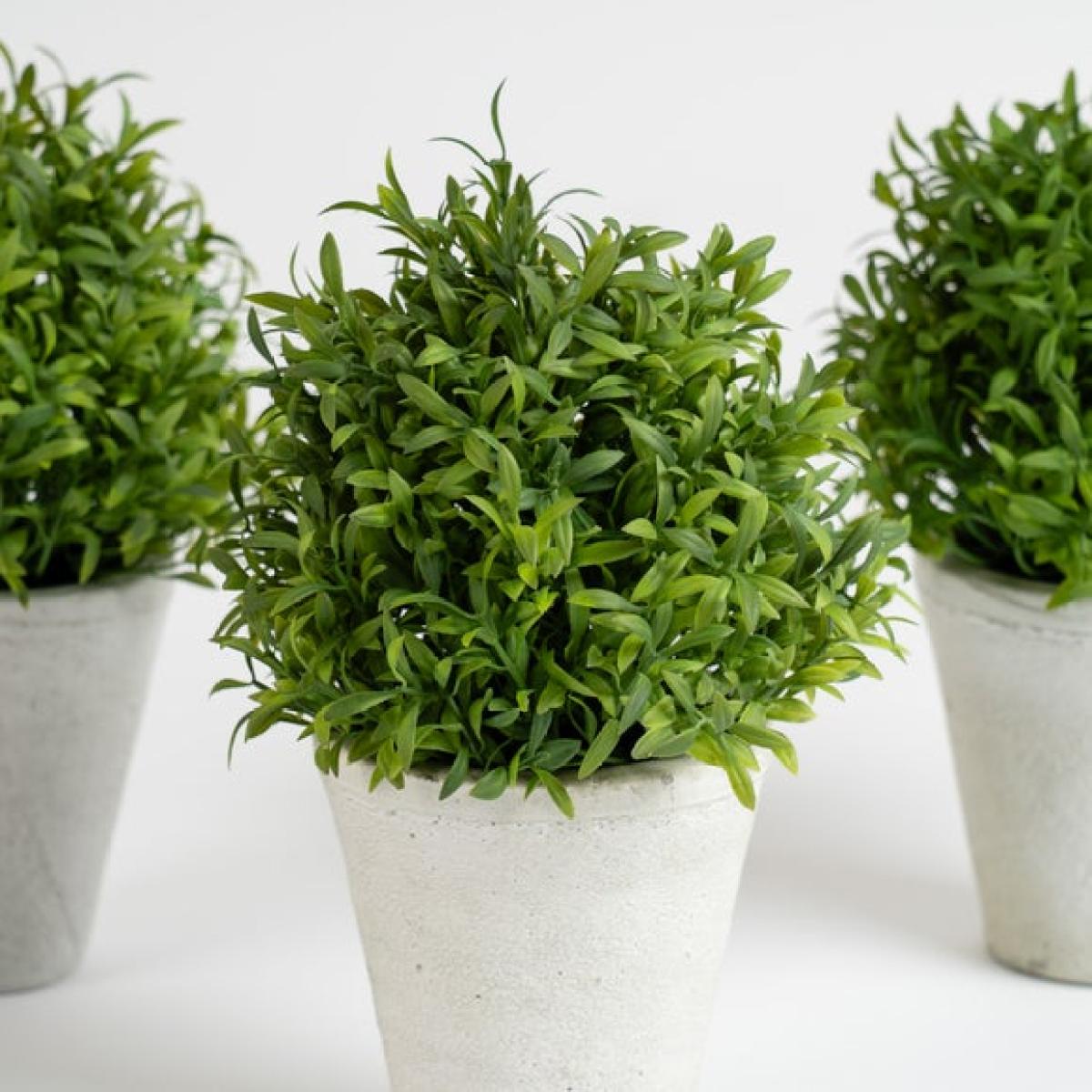 * Set of 3 * Life-Like, Artificial Plants * Maintenance Free - No Hassle * Great Gift Idea Style your shelves, window ledges or sideboards with this elegant Set of 3 Artificial Topiary Plants. Compact yet full of lifelike greenery, they're perfect for adding structure and freshness to modern interiors, no trimming required. Clustered together, they made a chic centrepiece; dotted around the room, they offer a subtle splash of natural texture whenever you need it!